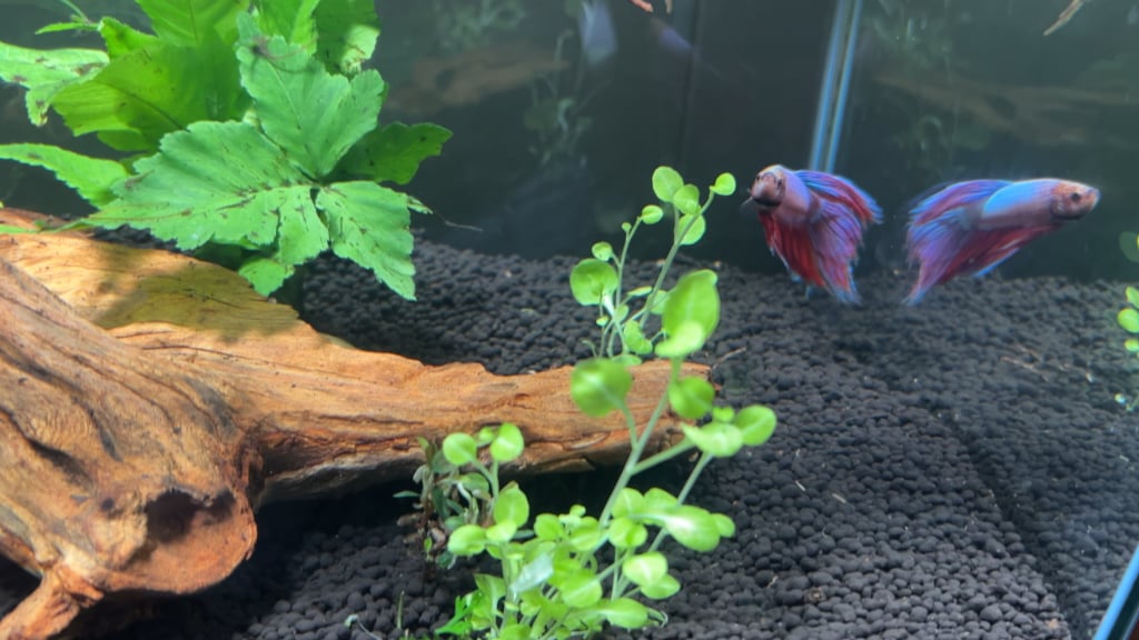 So I’ve had this 10 gallon tank and fish for around a month or so and I’m starting to notice some changes with my fish. He seems like he’s healthy, energetically swimming, flaring if I’m late to feed him, he’s getting bigger and more colorful (he was white when I got him) and I even found a bubble nest in the corner of my tank. I feed him 4-6 betta Pellets daily and picked up some blood worms today.