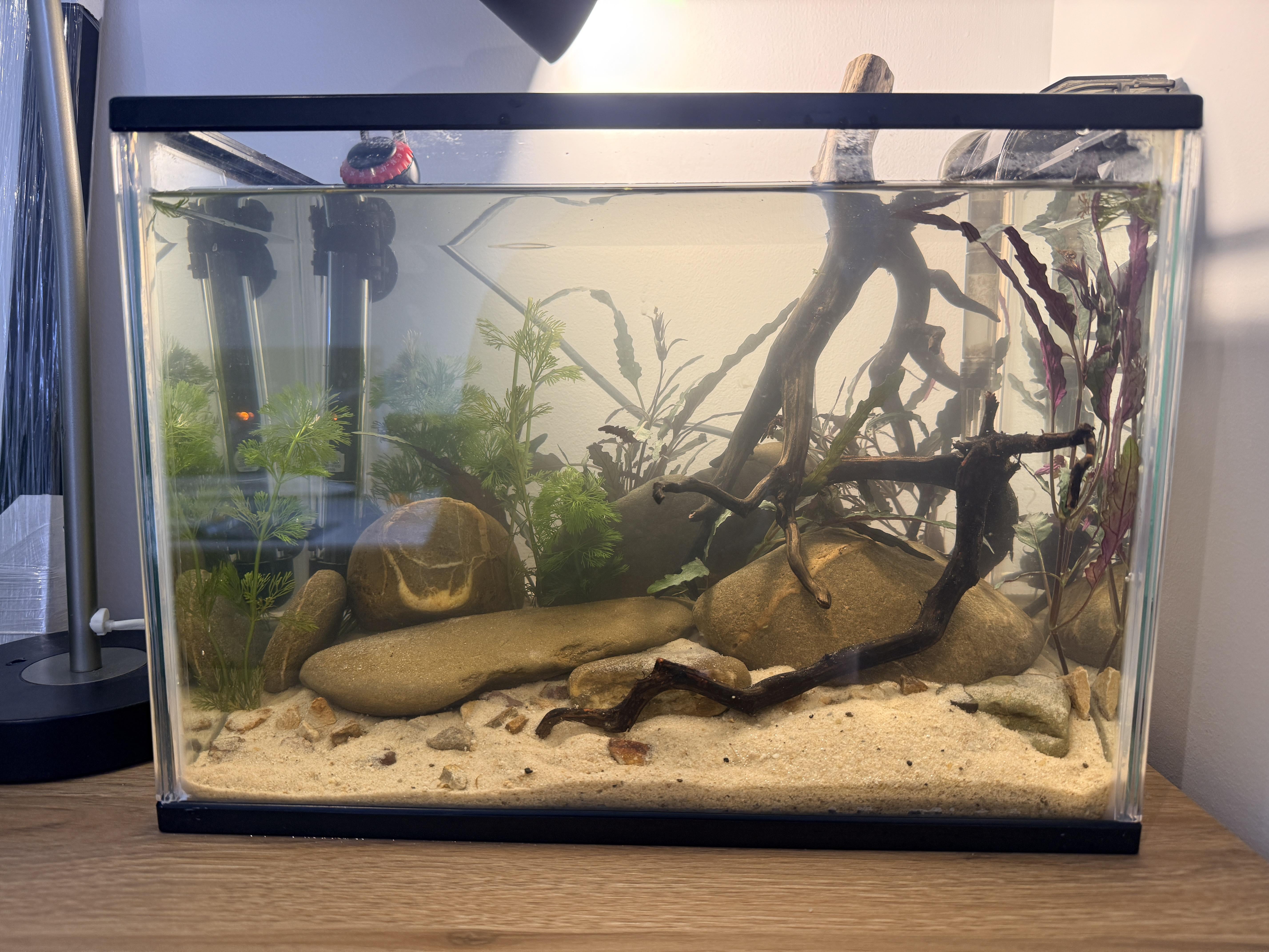 The 20l tank was free, got some plants from a neighbour friend for free and the hardscape rocks are from the garden. The only things I bought was a new heater, the sand, the wood hardscaping, some root tabs and assorted tank chemicals.