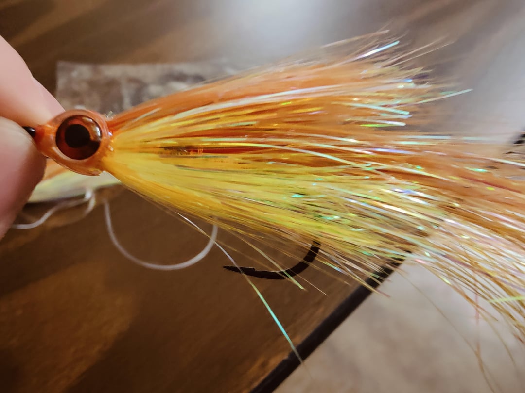 This fly was passed around in a presentation on fly fishing in the Northern USA for pike and muskie – he called it a "Rick's Special" because someone named Rick tied a lot of them for people – he didn't know what material was used. It seems to be thicker than normal holographic tinsel type flash, but the whole thing is basically made of the stuff. Stiffer, since it holds its shape some too.