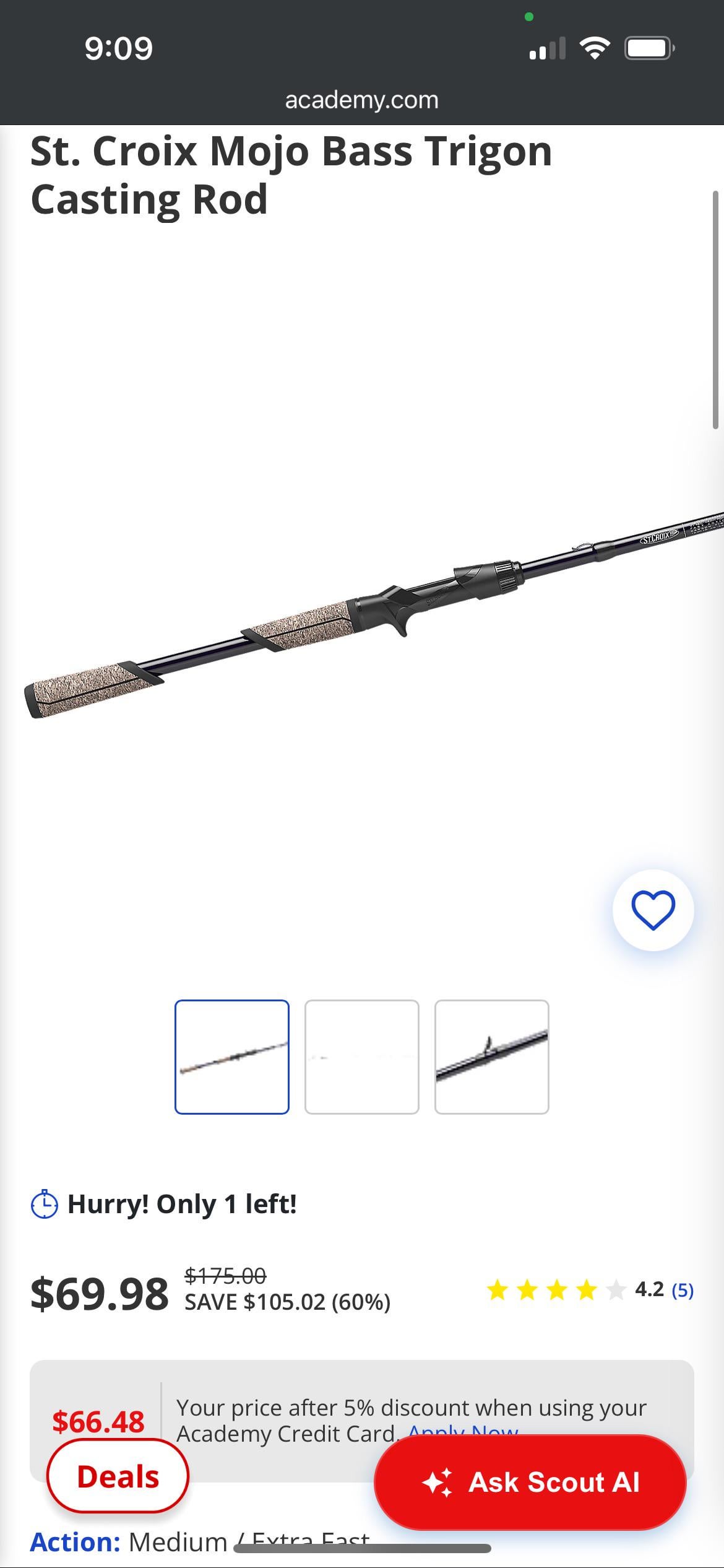 Academy is running St.Croix Mojo Bass rods on clearance for $70. Regular price is $175. I picked up two yesterday! Posted by Affectionate_Diet230