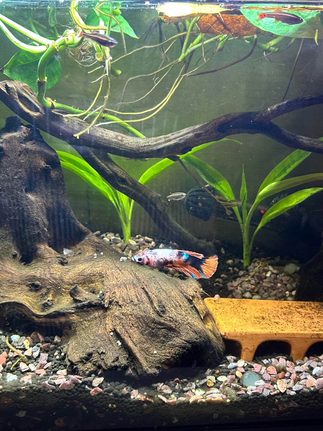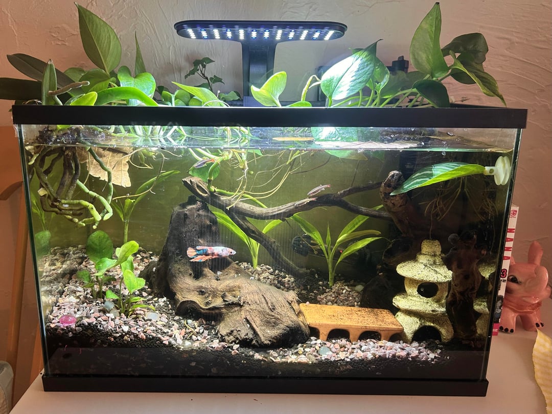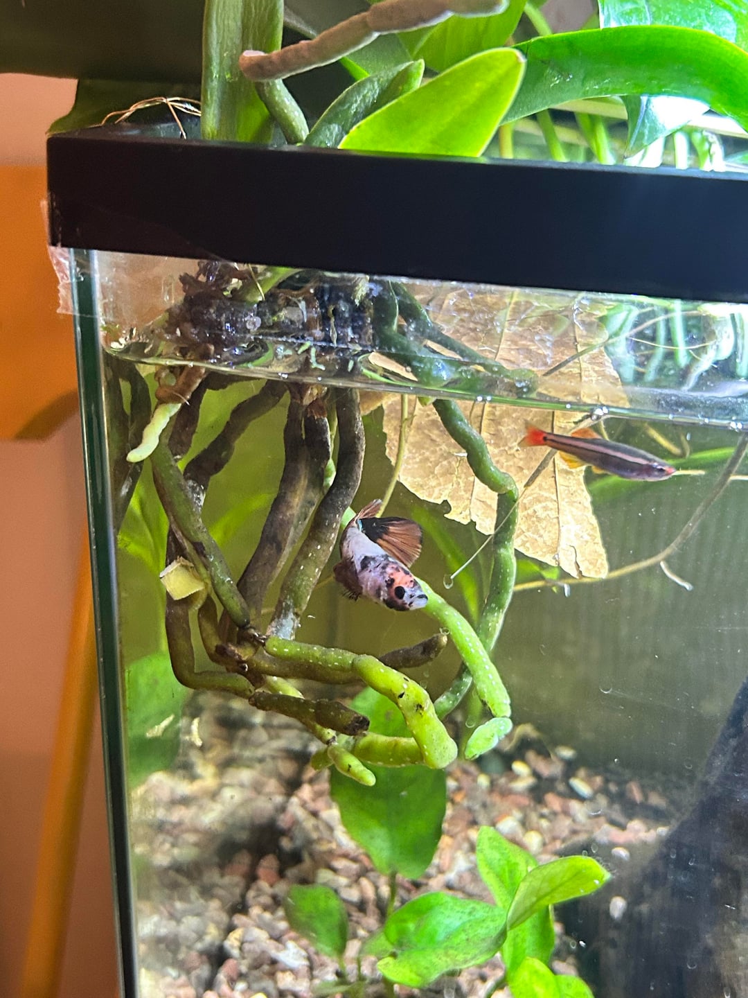 don't mind the substrate dust and the hard water buildup on the orchid roots lol (just got moved from a vase). first photo I ever posted of of him on here last in the slideshow💞🫧