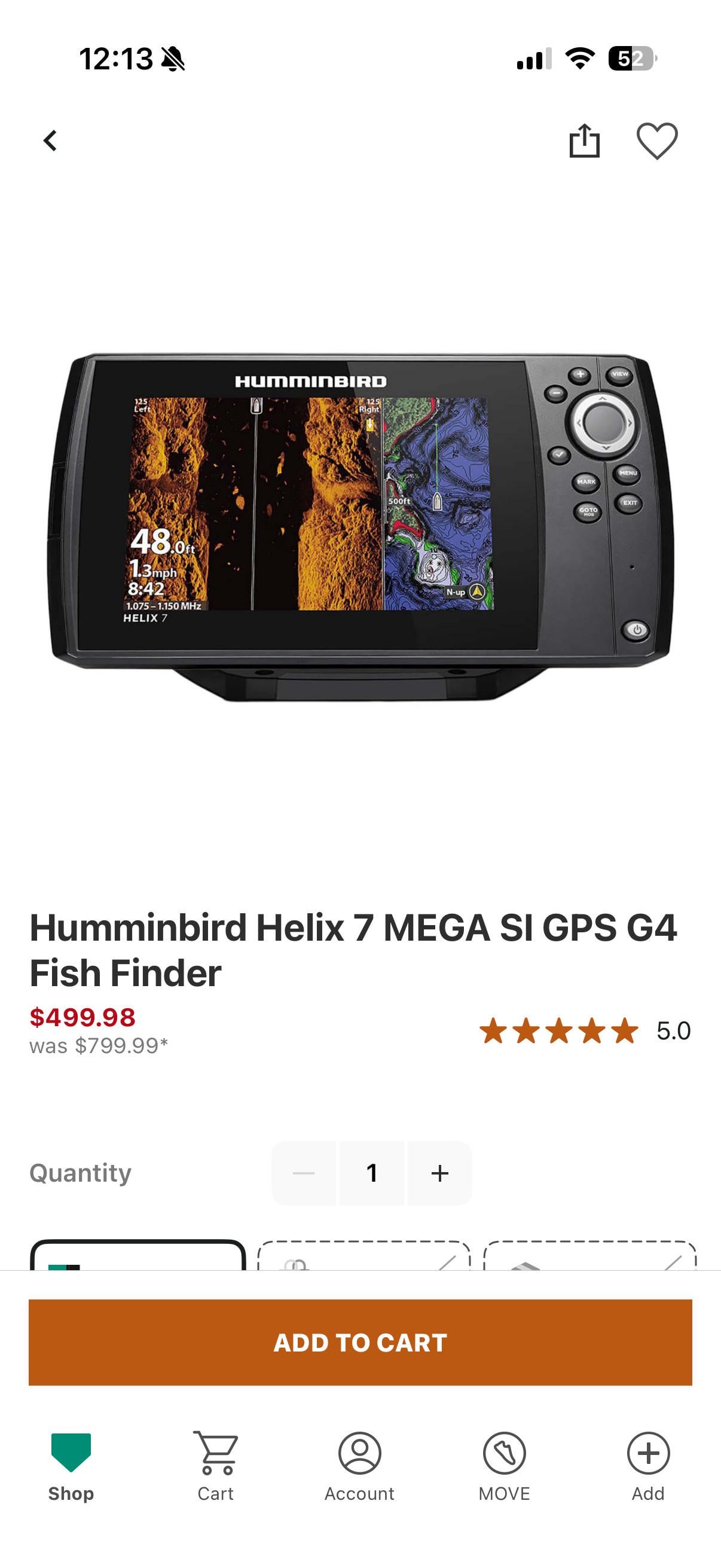 Dicks Sporting Goods has the hummingbird helix 7 MSI G4 on sale for $499. It’s a really really good fishfinder for kayak fishing and I haven’t ever seen it this low priced, great deal.