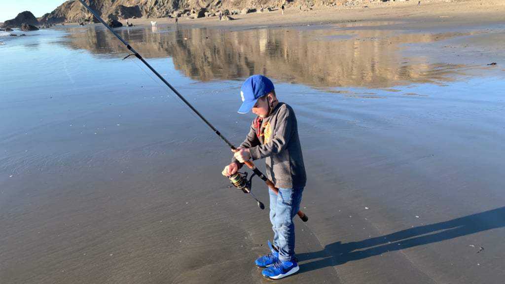8 year old casting 10 foot spinning rod. I had caught a couple of stripers the day before on the same rig. Little guy wanted a repeat. Great day out in the surf. Posted by macsogynist