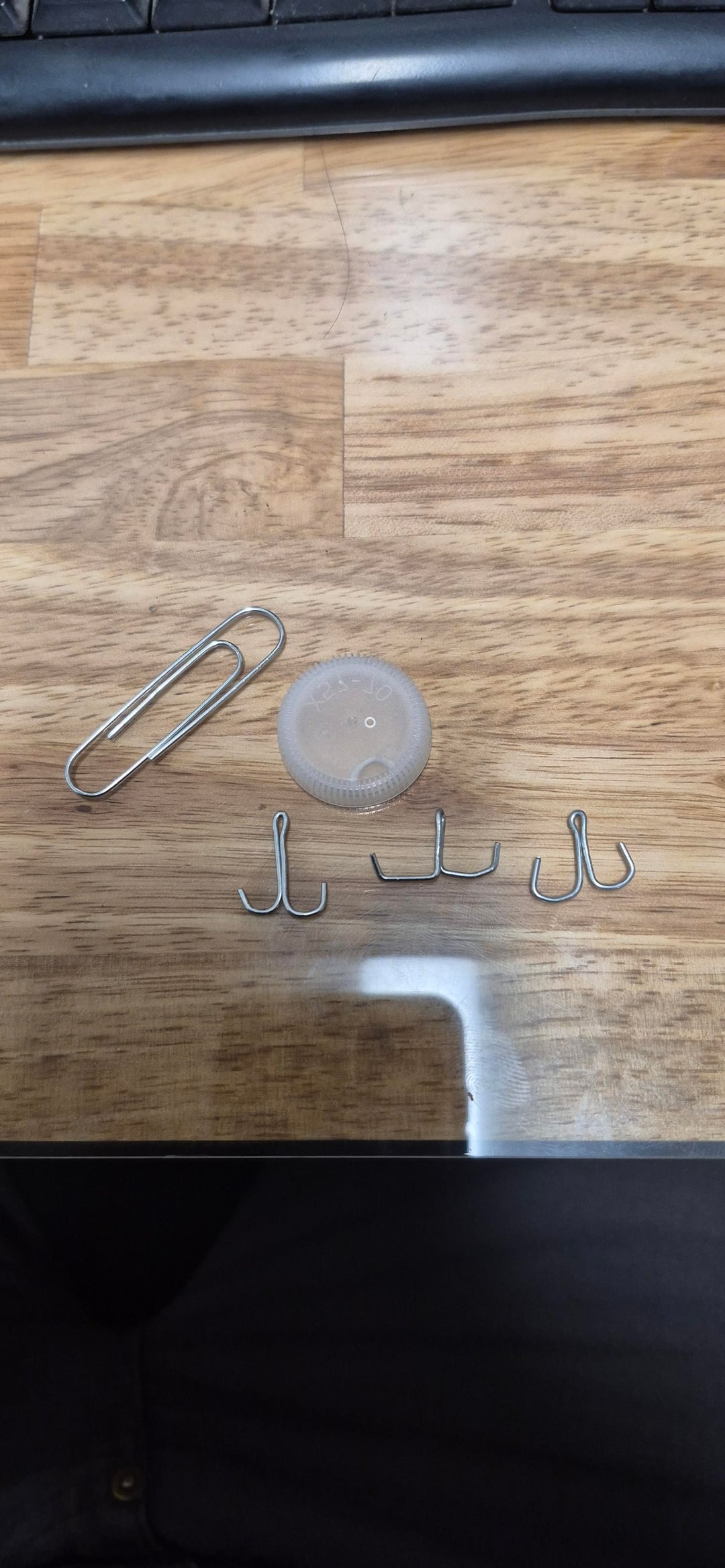 I was considering getting some neko hacks for neko rigging but majority was either out of stock, or only had the bulk packs in stock. So I decided to try to make some on my lunch with some pliers and a paperclip. Proof of concept is there, Once I get home ill try and make a better version using actual wire bending pliers. Considering even tying some string around the shank to keep it closed, or even adding a dab of super glue if needed. I'll post a photo of v2 once I get to making them. Bottle cap and paper clip for scale.