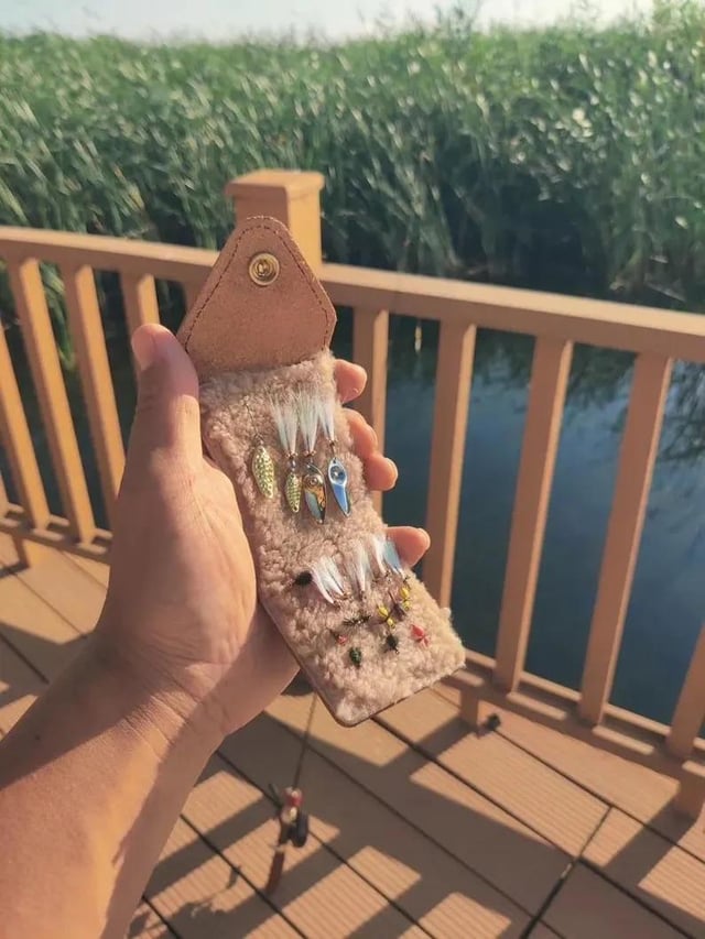 I found this small tackle holder on etsy and wanted to make him one myself since I’ve done a bit of leather work and have some leather+sheepskin at home. I wondered for you experienced fly fishers (sorry, I just ice fish) is this something he would actually use or would the sheepskin be annoying and get stuck on the hooks? I know he would appreciate my making it but I don’t want to make him something that he won’t really use anyway. Please let me know :^)