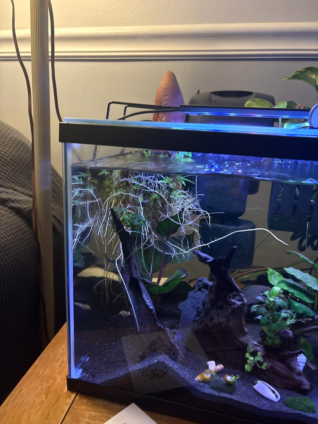 The fish in this tank would dig up all the rooted plants so we had to move to other options. She is cute… but a menace. Posted by Darcona8