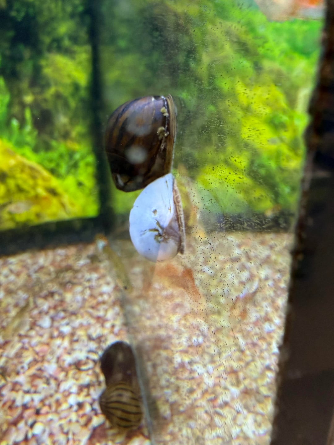 For those who don’t know, this isn’t natural. These snails have been dipped in acid, which strips the outer layer of their shells in order to give them a white shell. It’s a terrible practice and nothing I’d ever willingly support. The issue is that I can’t just throw these snails away or anything!! They’re still alive and as healthy as they can be!! I just feel so bad having these in our store. We constantly get compliments on our selection of fish, quality of fish, and cleanliness of our tanks. Having these snails just makes me feel shameful.