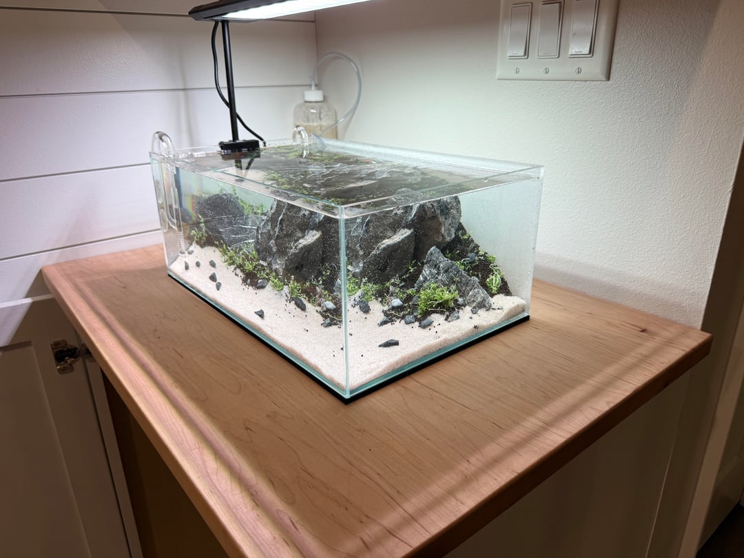 First time making a shrimp tank. It’s roughly 6 gallons. Hopefully the Monte Carlo will carpet in a month or two. Posted by 2011denali