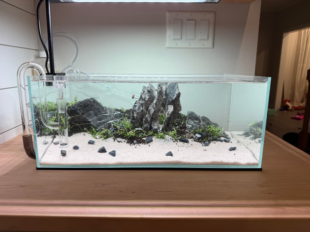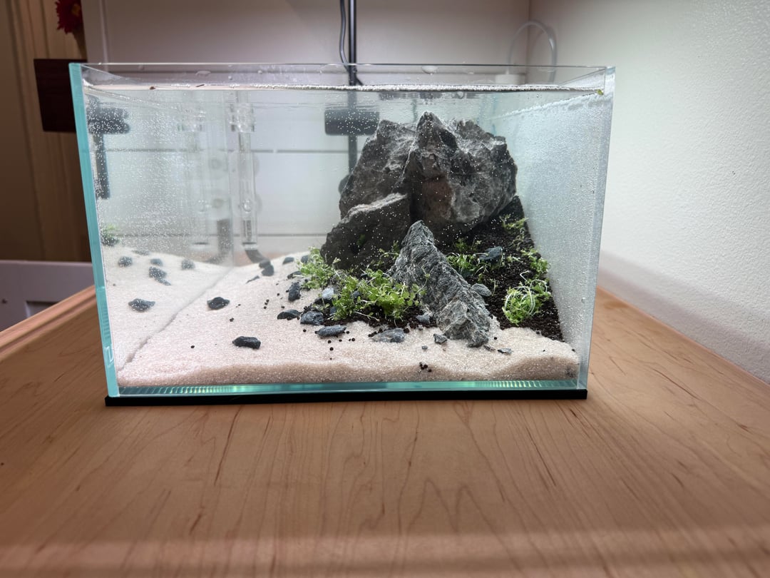 First time making a shrimp tank. It’s roughly 6 gallons.