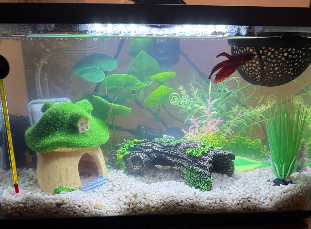 So I’m currently cycling a small tank for scuds and freshwater isopods that has pink/blue plastic plants (along with real ones), pink gravel, multicoloured lights and a plastic dolphin 🐬