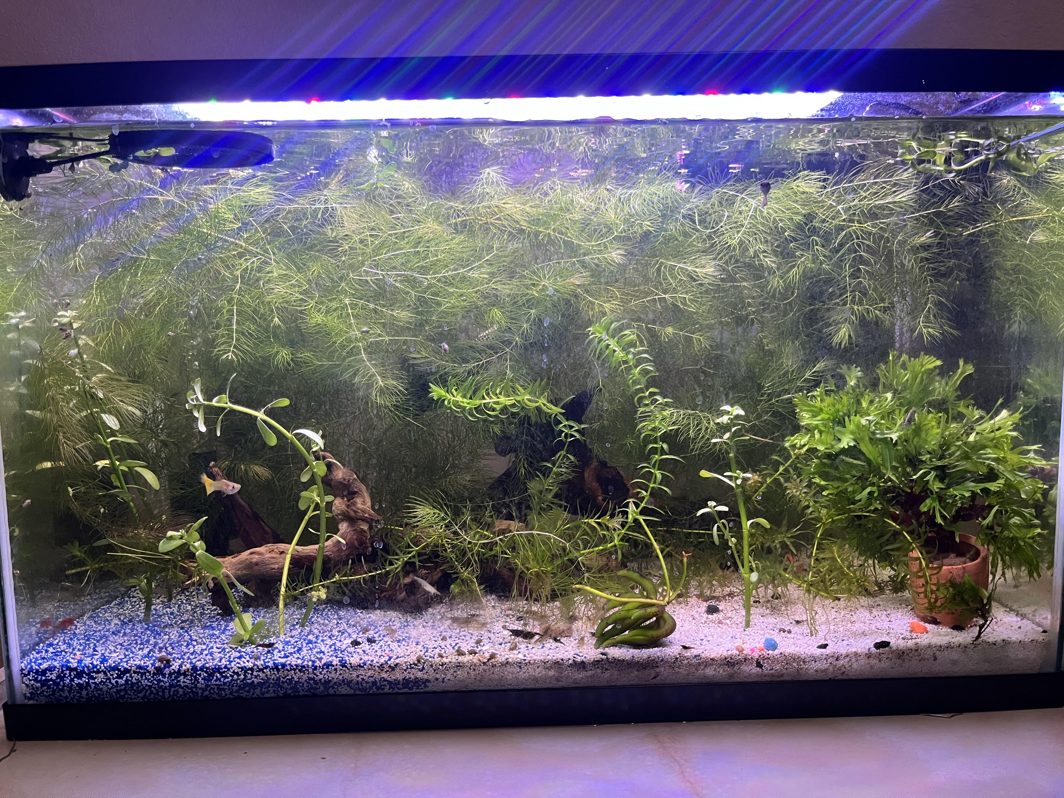 Currently has neocardina shrimp, a devil spike snail and two guppies but I plan on rehoming them cause the school died :/ so I’m wondering what centerpiece fish I can put in here I was thinking of a honey gourami but idk tho