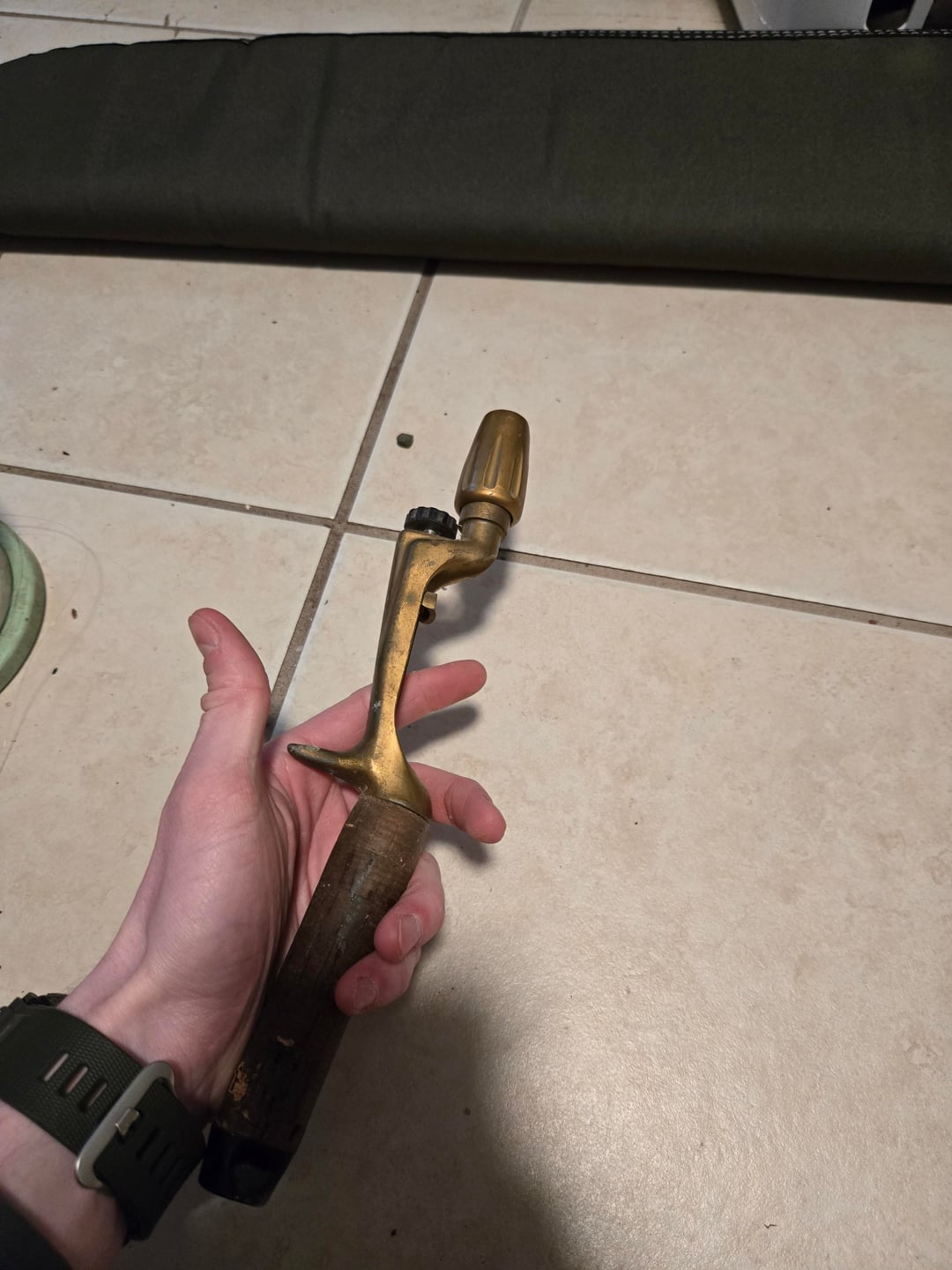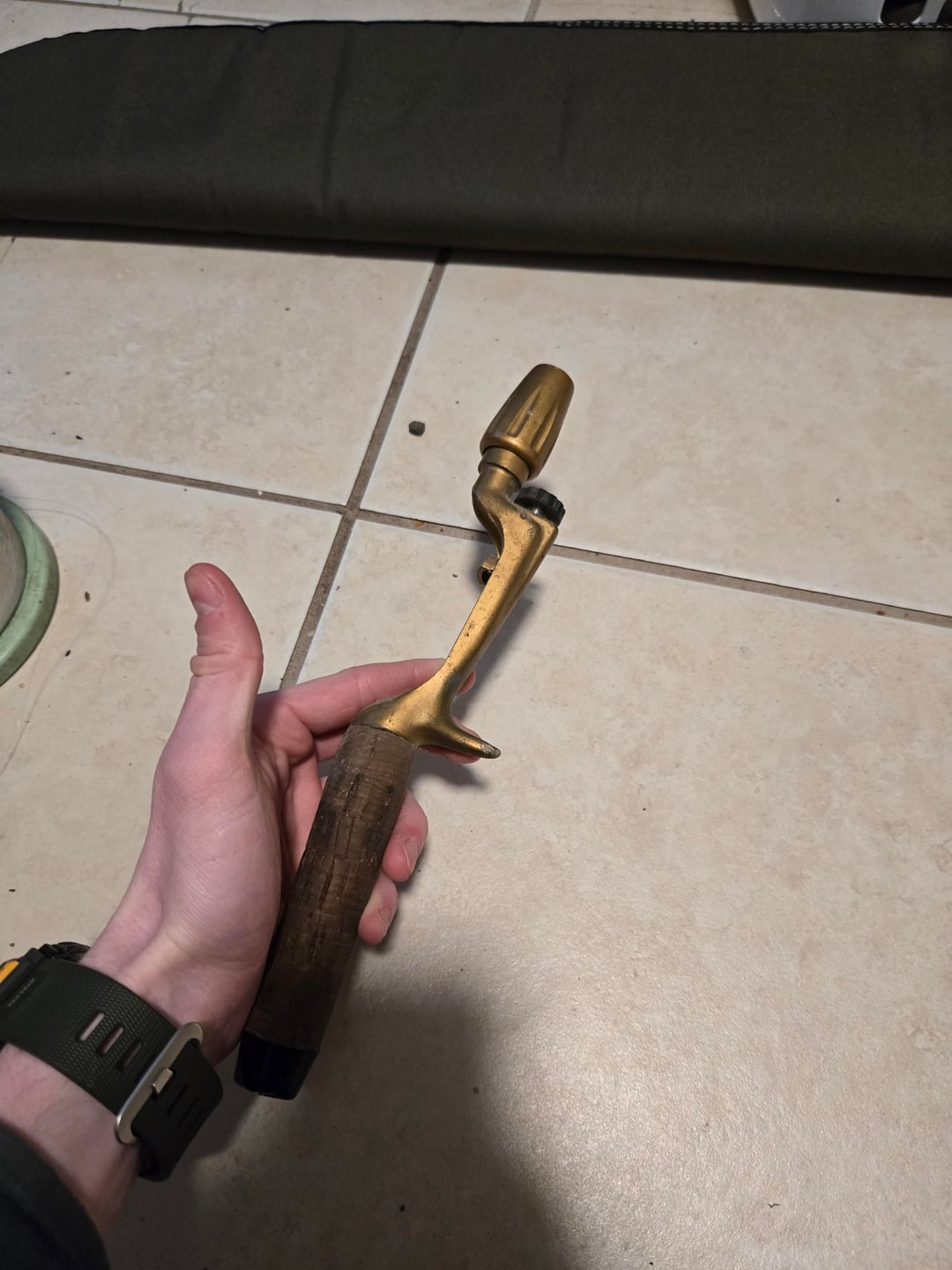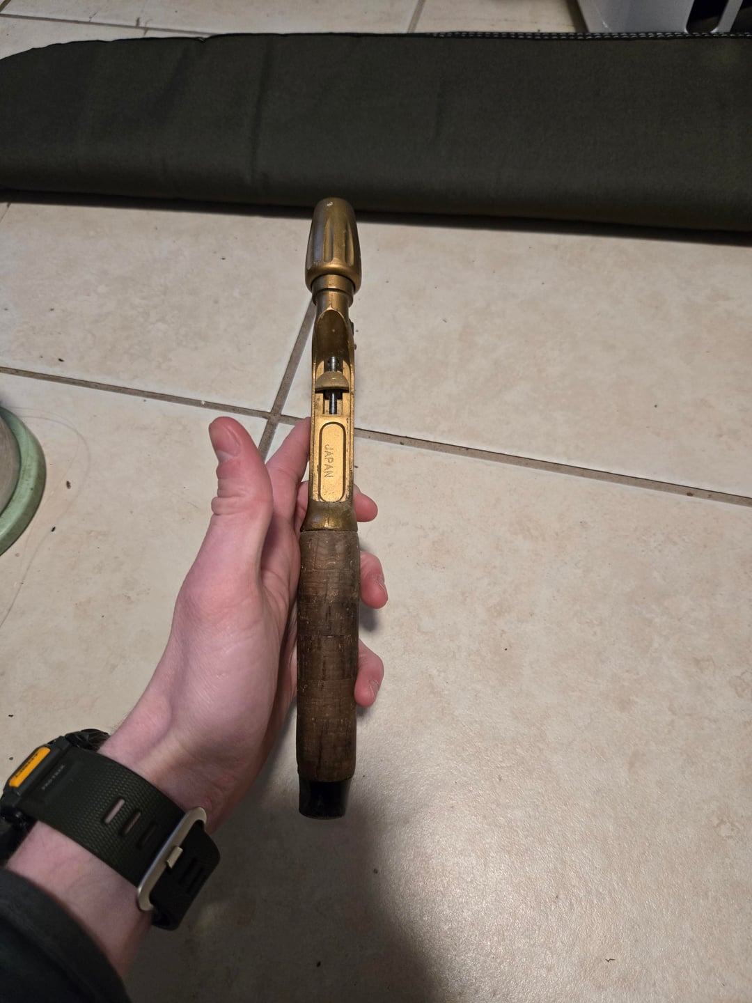 hey all, my grandfather passed away recently and left me with his fishing things and one thing I thought was very unique was this rod handle. its an older brass or brass plated pistol grip handle with cork grip. the only labeling on it says Japan which isn't very helpful. I'd like to find the type of handle it is so I can get a rod for it to use it.