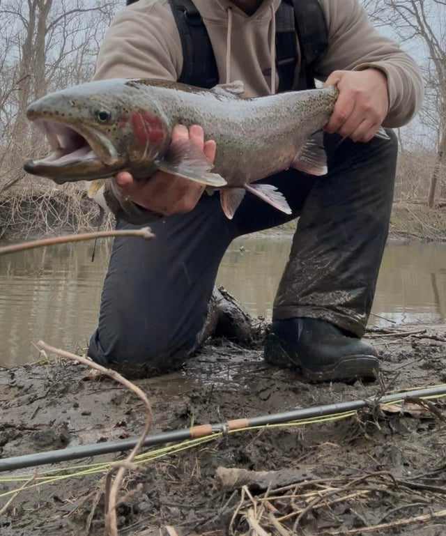 Caught a few smolt this winter but this is my first proper sized fish on a fly rod and my first steelhead/lake-run rainbow. Egg pattern under an indicator on a 6wt. Posted by peachjammers