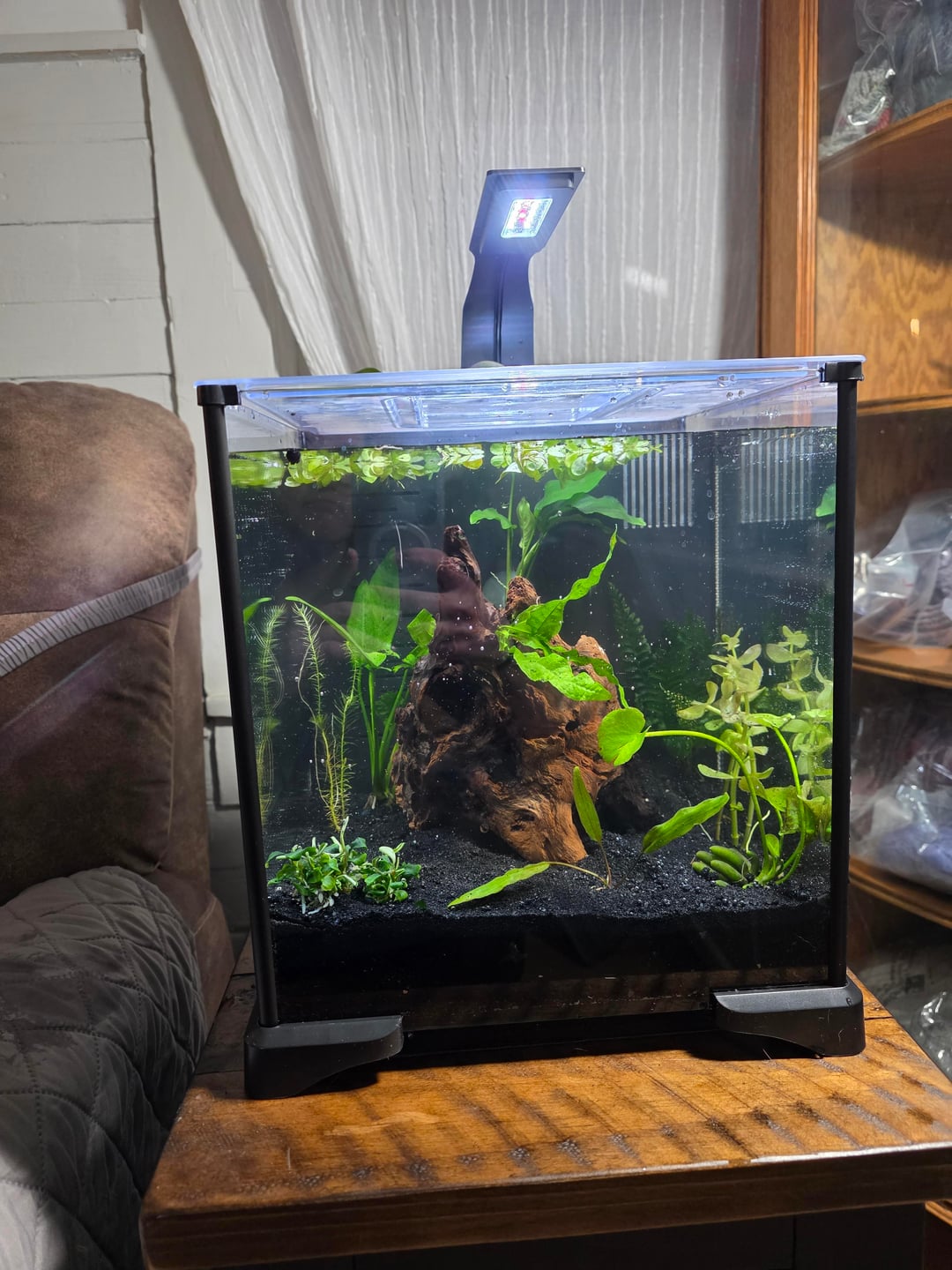 This is my 6 gal Fluval tank. I'm aiming for the FF heavily planted, soil/sand substrate method. I put in a total of 5.5 gal, which I was concerned about because I didn't know how much the substrate and our center piece would take up. Will a betta be happy here??