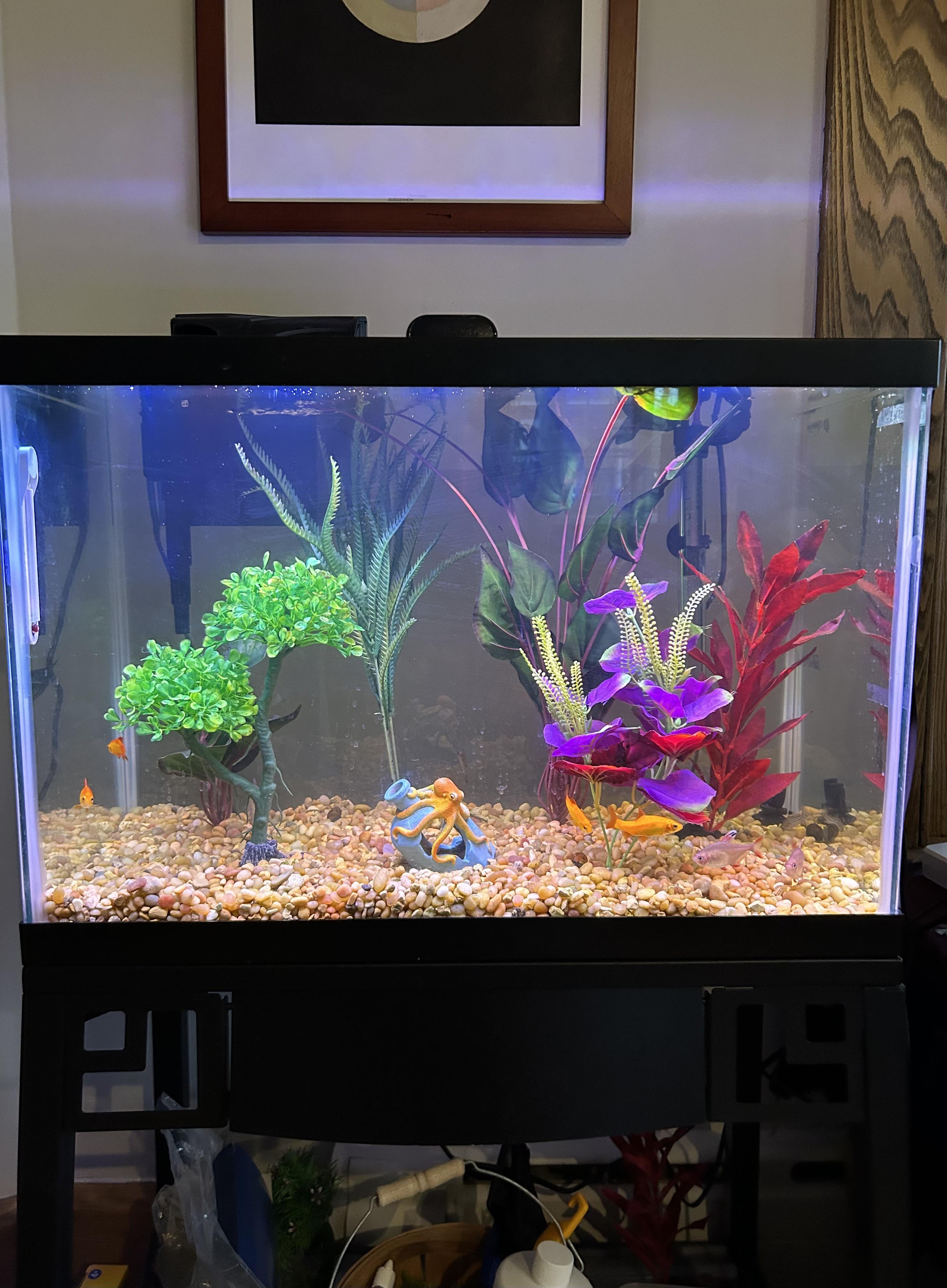 The challenge is that I overcorrected in treating the bloom with a few products plus sunlight blocking, and the tank now appears to be very low-algae. I do a weekly 1/3 water change and added some beneficial bacteria from the fish store in case I wiped that out too. Snails seem active enough and look healthy but the decor is seems algae-free lately. Are they getting enough? I don’t feed them anything, was told algae is all they need. See the photo, ceramic octopus in center is staying orange lately, it used to turn pine green from algae. Ph is kept around 7.2 to 7.5 and the light’s on a timer 730am-430pm. Should I let the sunlight back in? Do anything else? I want some signs of more algae but don’t want to unleash another out-of-control bloom. Thanks!