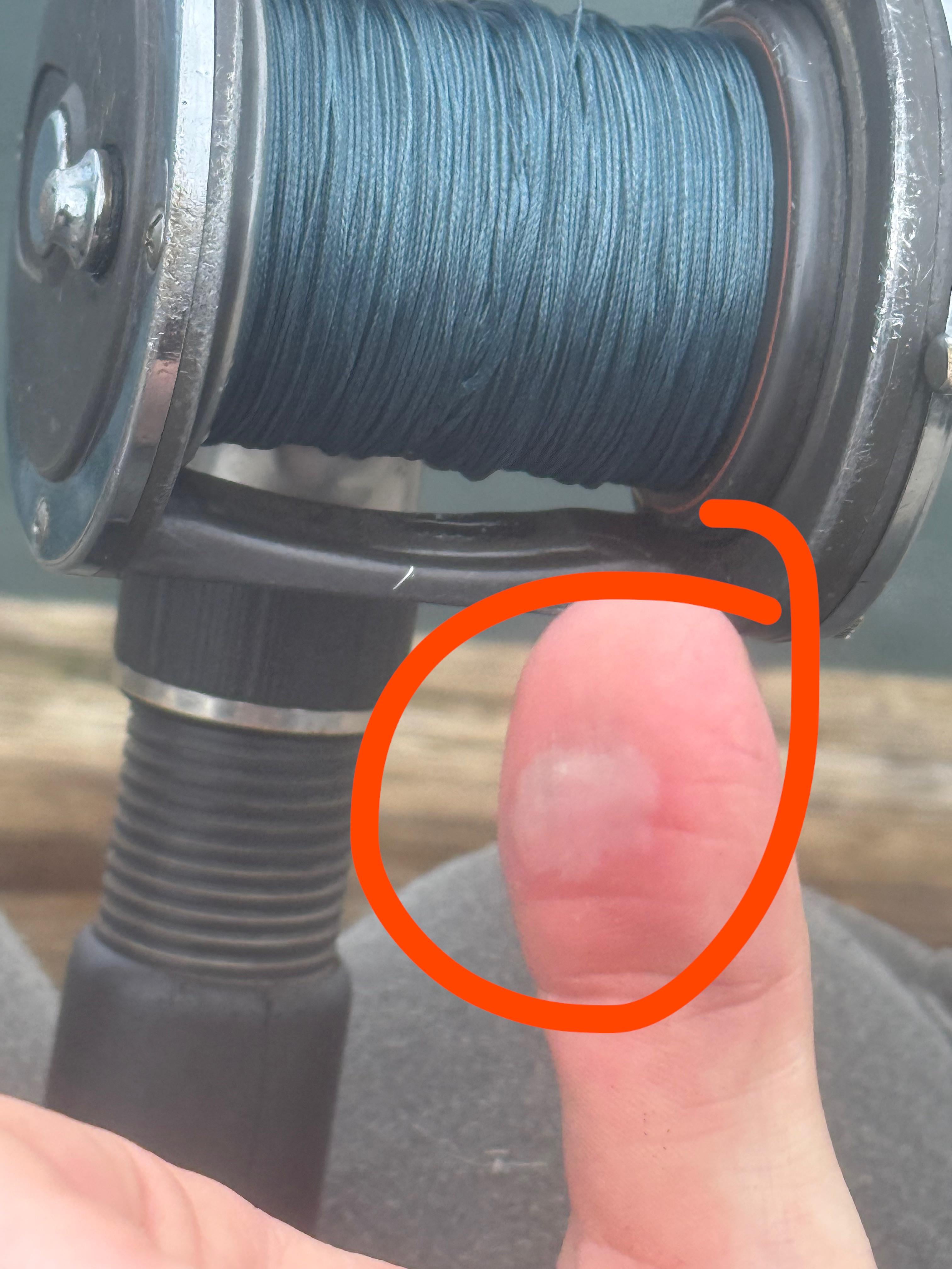 Got a little too desperate using my thumb as a brake to prevent backlash on my cast, (happened before about an hour prior)and got what I imagine is some kind of friction burn on my thumb 😹