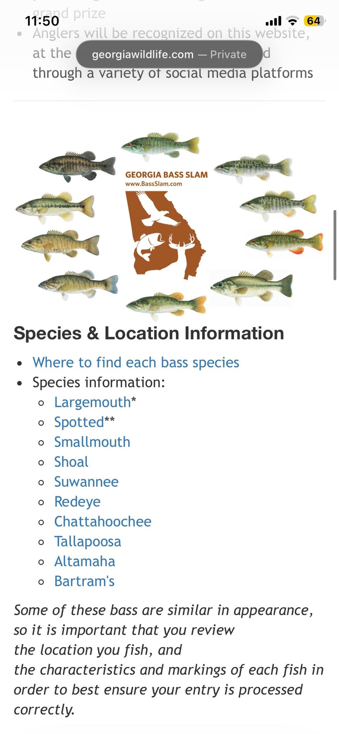 Question for anyone with general knowledge of bass fishing in the state of GA. I’m looking to complete the Georgia Bass Slam this year (5 different species of black bass, see pic for details). For reference, I live inside the 285 perimeter and still managed to catch 4 of the qualifying species last year (largemouth, smallmouth, spotted bass, and shoal bass) out of the Chattahoochee and Sweetwater Creek. My question is, which of the remaining species can be caught closest to Atlanta? I certainly don’t mind driving several hours or even spending a night/weekend somewhere, just don’t want to aimlessly wander and waste time. Any tips on location and/or lures would be greatly appreciated. Thanks in advance!