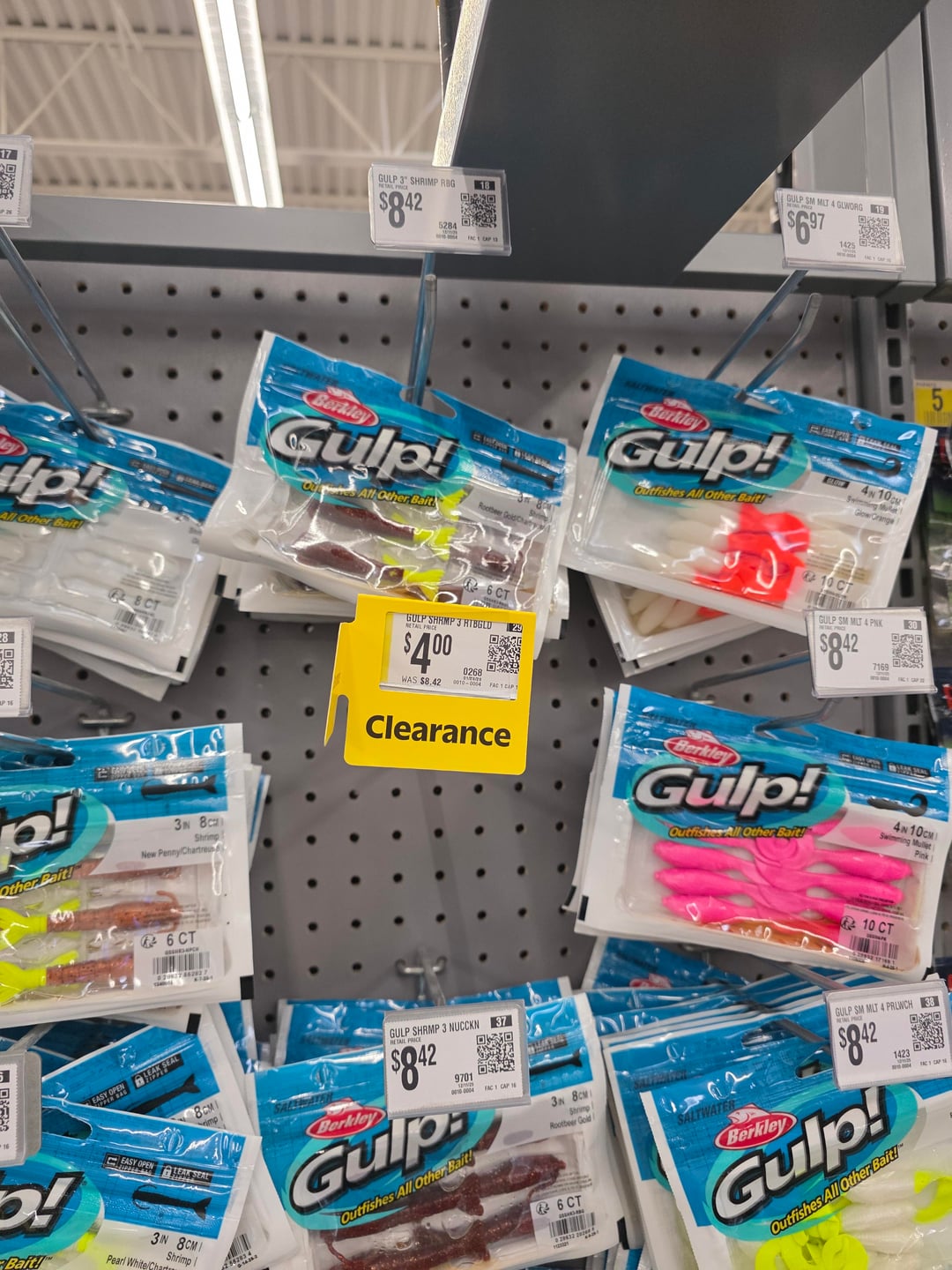 all the clearance goodies were goners, but the shrimp at my local bait shop were chonkers! the last pic are the "regulars", they had "large" too.