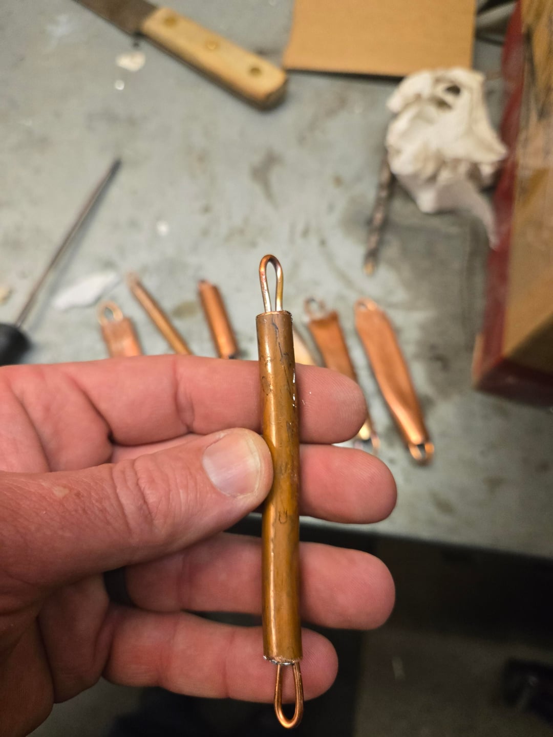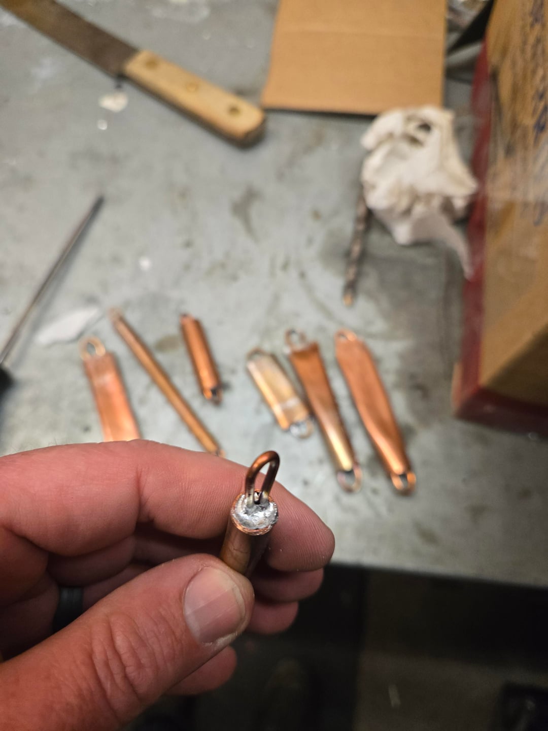 Thought I'd try my had in making homemade jigs. Used some copper pipe and molten lead. Figured if I can catch a bunch of yellowtail and rock fish on iron/aluminum jigs why not copper and lead?