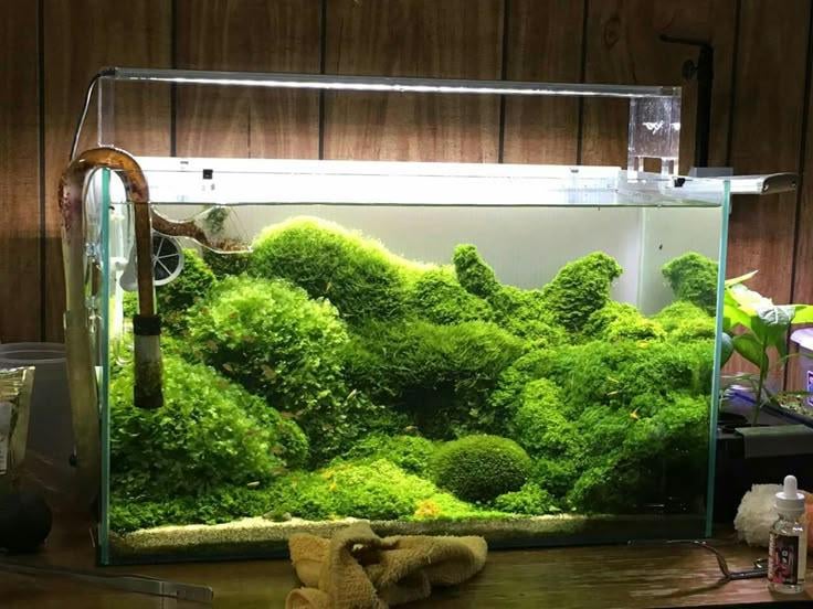 Moss grows extremely slow and is prone to thread algae so you will have to get your lighting balance just right. Then it’s trimming and shaping it over the rocks/wood.