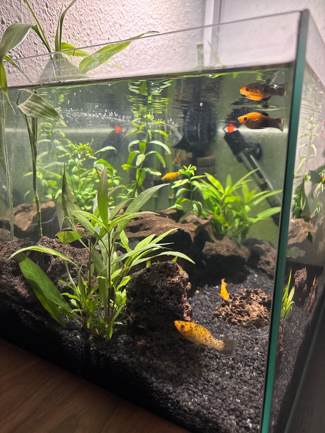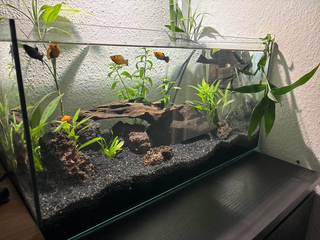 There are Mollys in the tank along an Anentome snail (with life feed).