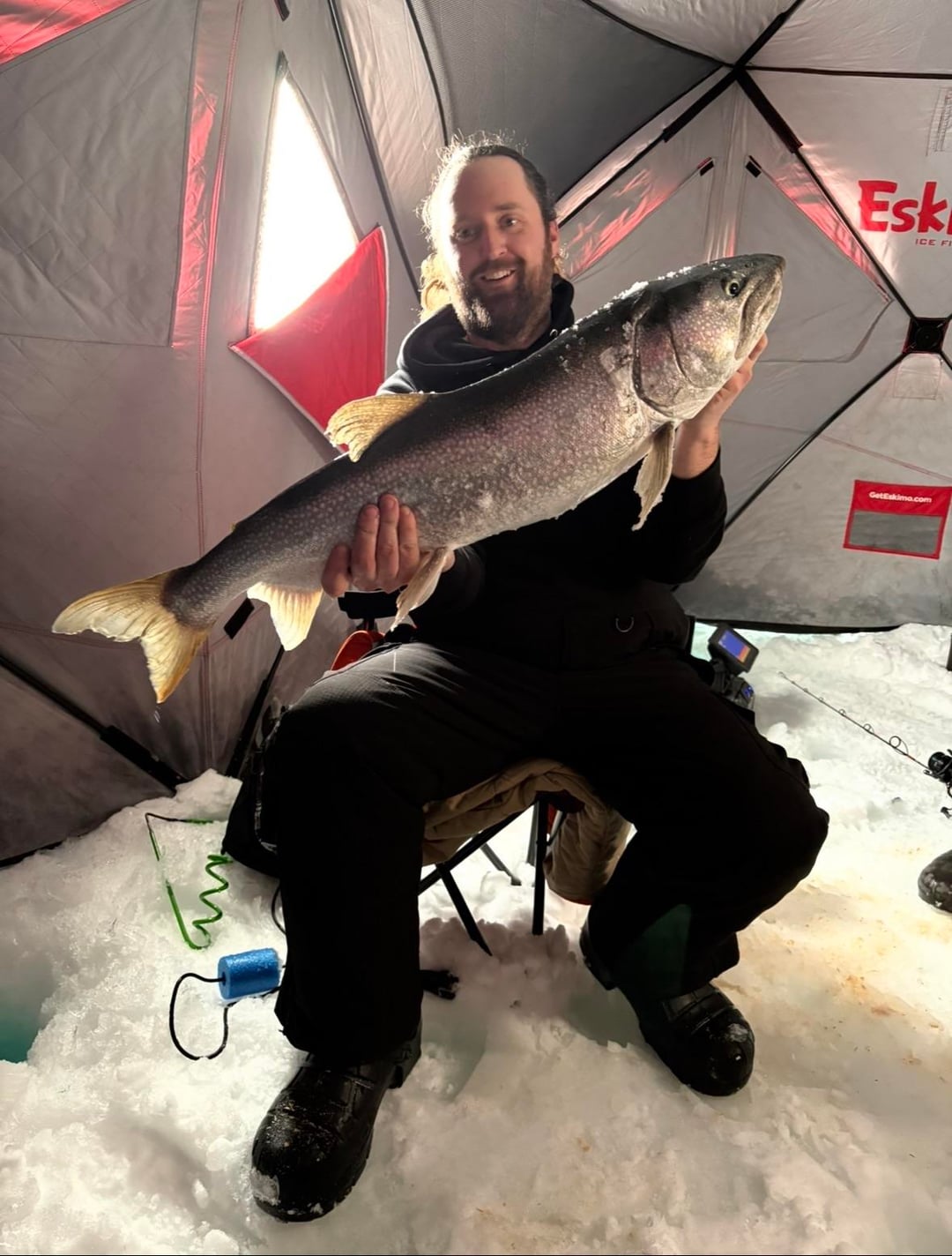 This past weekend despite -35c temps I set out with two friends on an epic journey to Lac La Ronge for some giant lake trout. The three of us set out on two snowmobiles across one of the biggest lakes in Saskatchewan. We stayed at north country lodge and only fished for 1.5 days, but I was absolutely thrilled to catch this 35” giant. Mind you there are bigger lake trout in this amazing fishery, but I was still really happy to walk away with a master angler on my first ever lake trout trip.