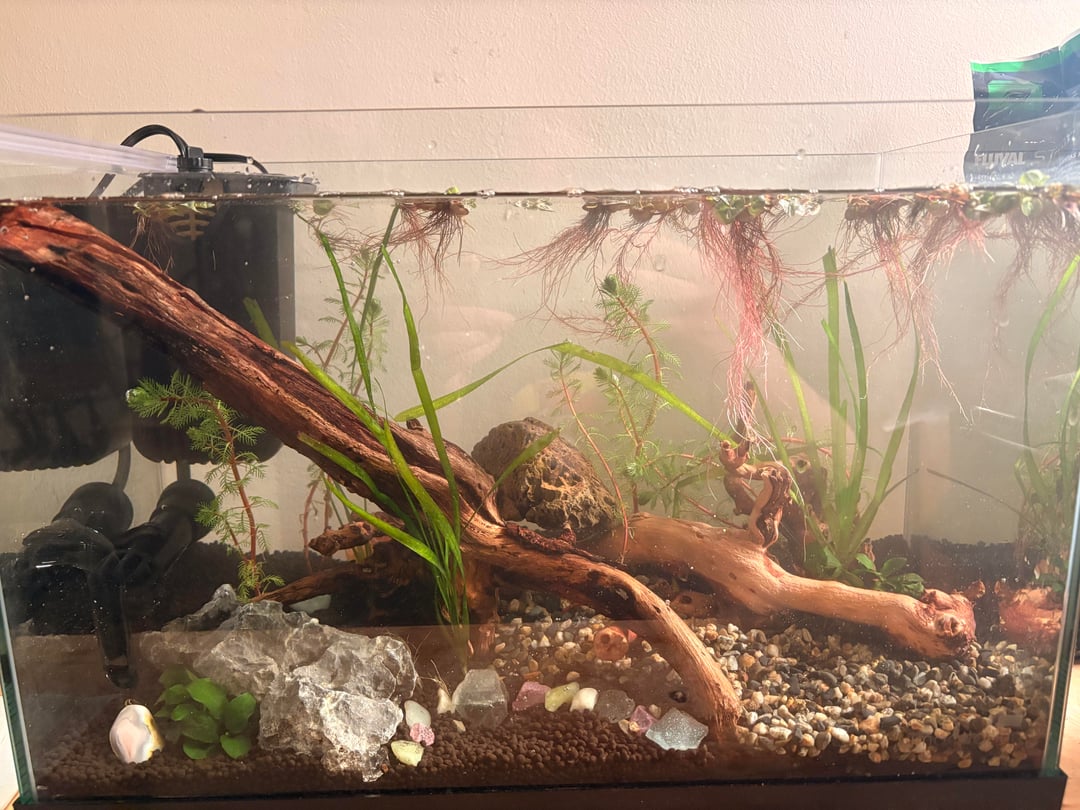 Getting more plant cuttings from some friends with tanks and my LFS, but otherwise the cycling process has begun. Historically, I’m a rodent keeper and house-plant-addict, so I’m savvy to animal care, enclosure setups, and plant life. This has been such a fun learning experience! Can’t wait to get my fishy and keep learning about fish keeping & aqua scaping : )
