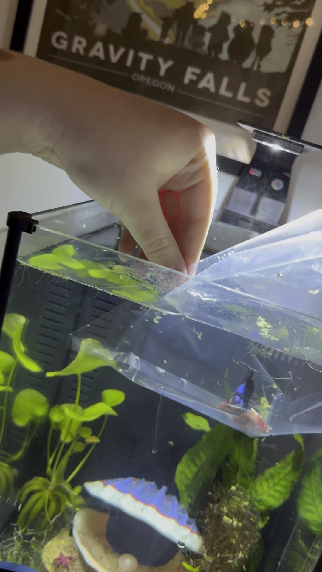 After three long weeks of waiting and cycling the tank, the parameters were perfect today and my 14-year-old daughter finally got to pick out her betta! She fell in love with this koi half moon and named him Toast.