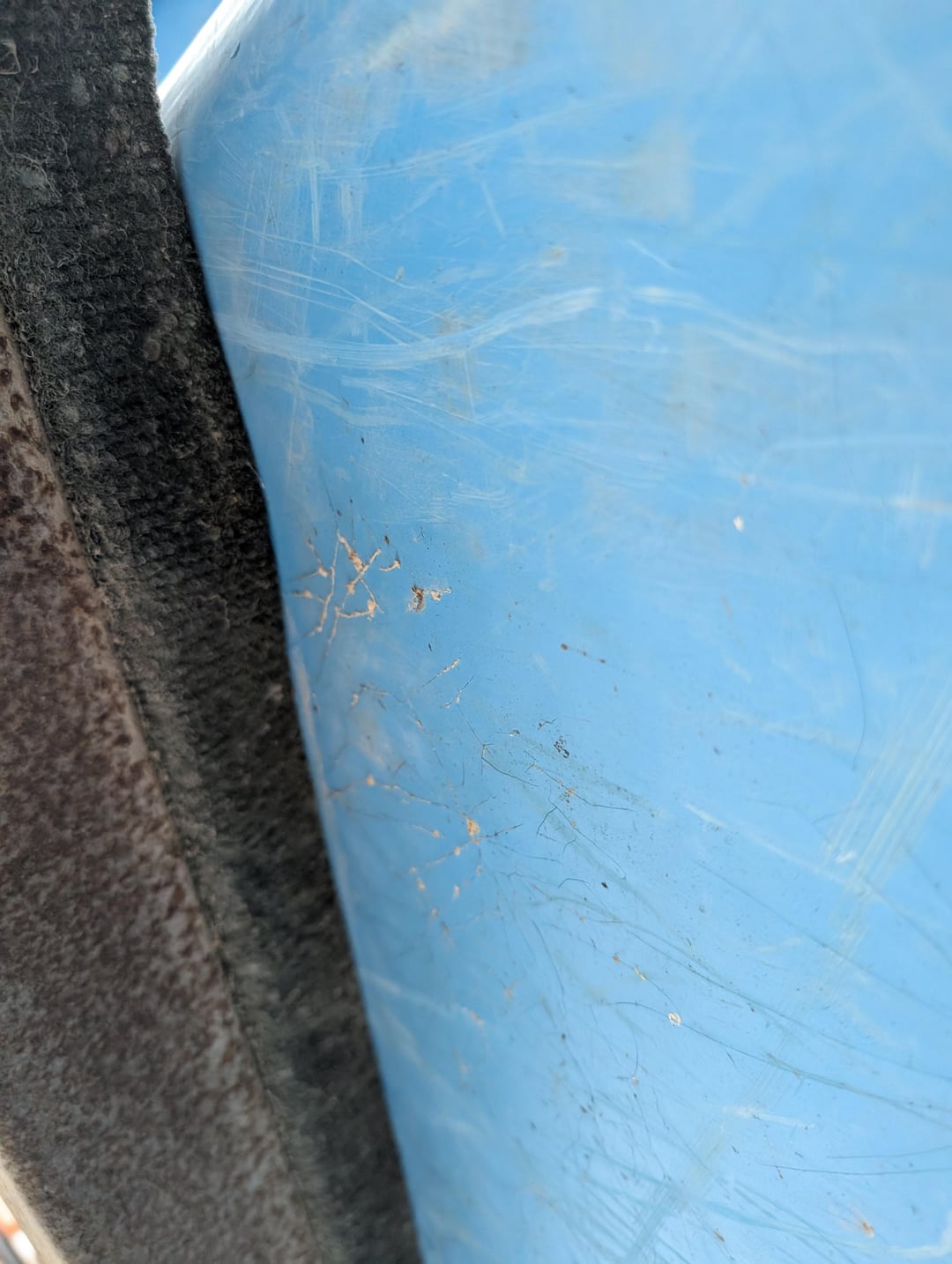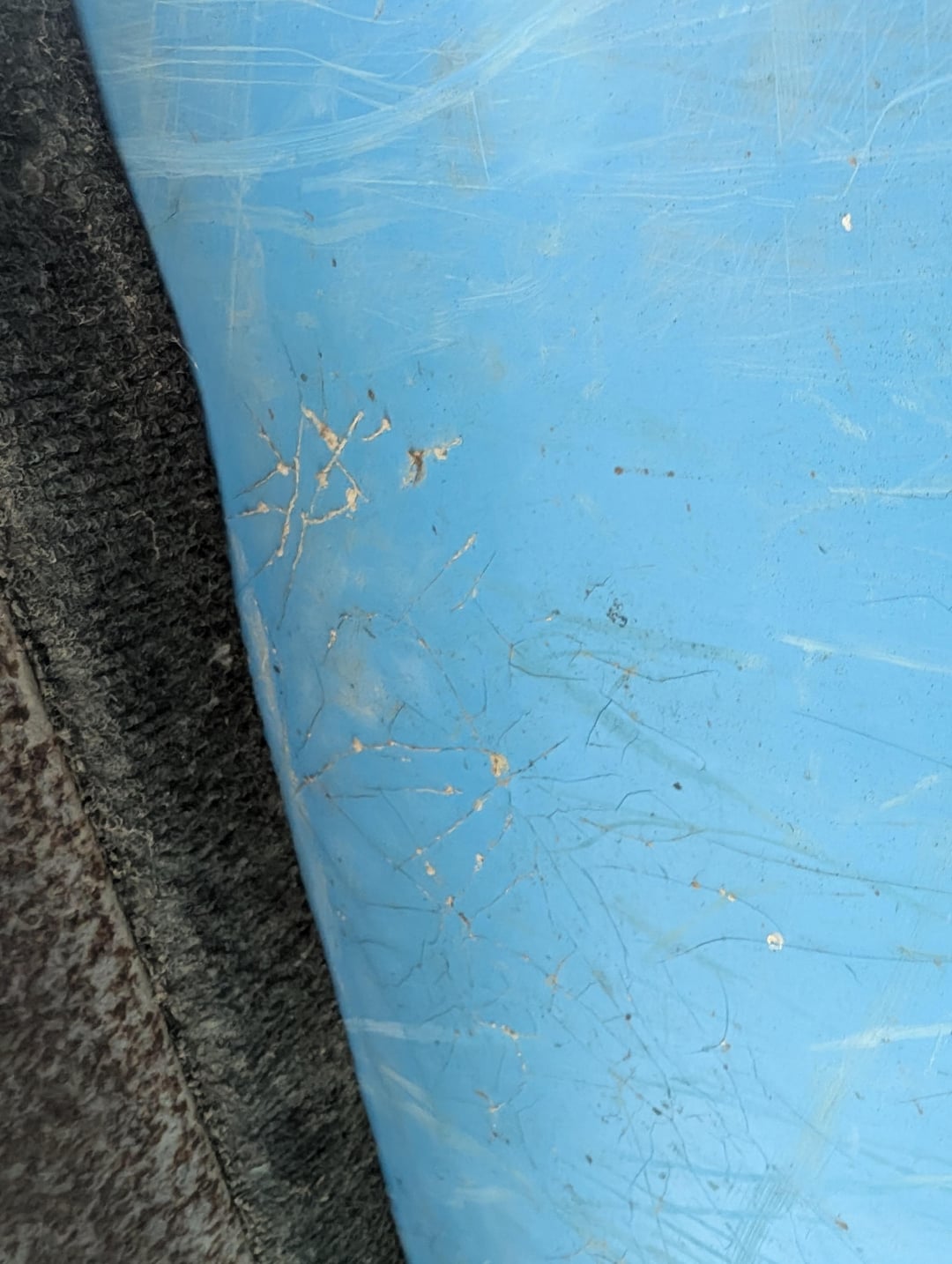 So I bought an 86 lavro from the original owner. He claims the gelcoat was redone in 2010. My first question is, should I bother repairing these dings on the chines? If so what epoxy should I use? And should I bother sanding it down? Second. The gel coat looks like it’s cracking underneath and possibly exposed to the glass, is it worth addressing? And finally, looks like the fender on the trailer has rubbed through the outer coating, it’s above the water line. Is it worth touching either? I got the boat for dirt cheap so I’m hoping to not dump a ton of money into it, just a handful of repairs.