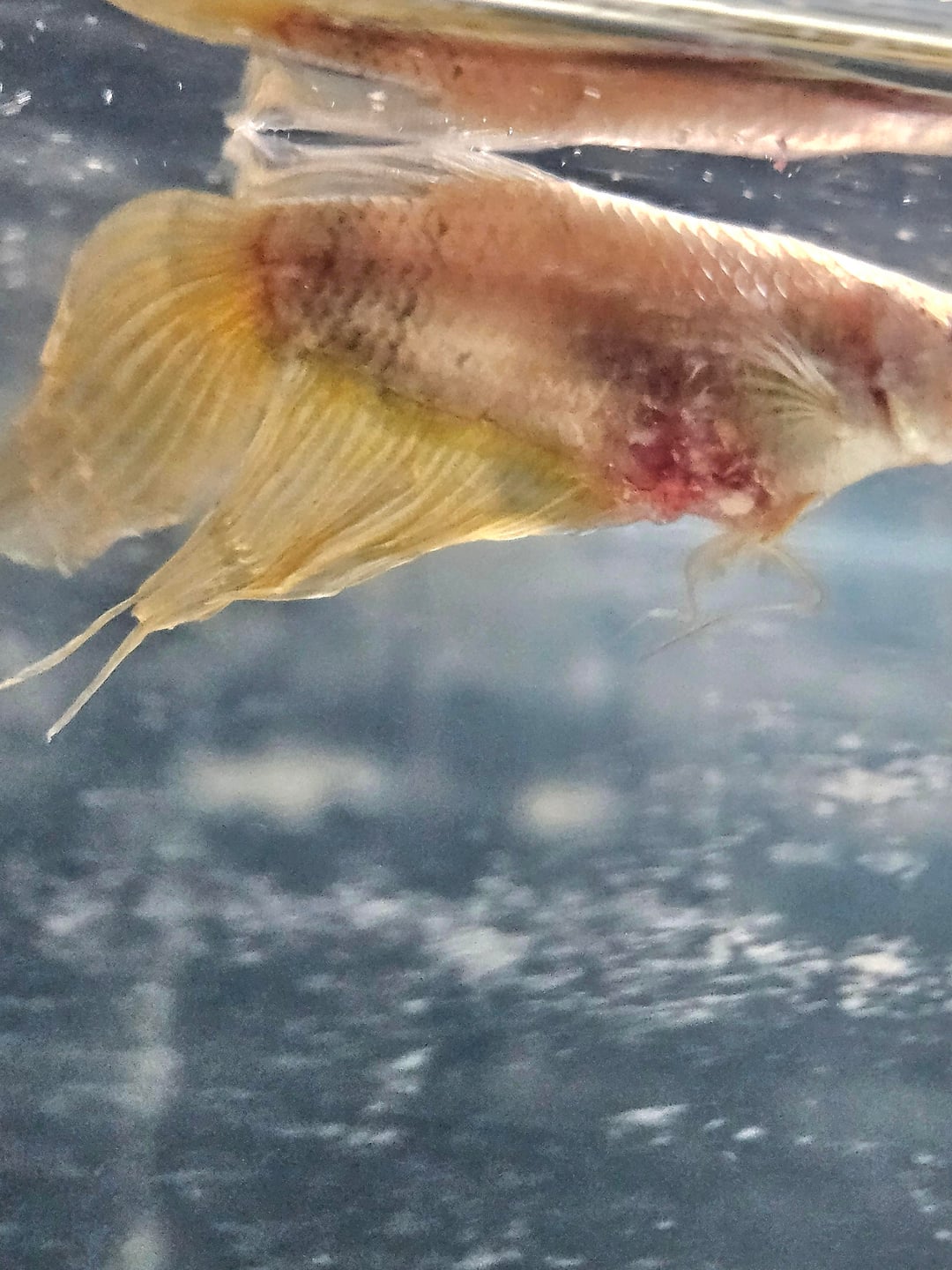 I saw a little red mark on his stomach and the next day it was just open. He acts fine, swims fine, no eating issues, still energetic, etc. Can't find anything online like this. Most cases that look like him don't make it, I just really want to hold onto hope that he'll be able to heal