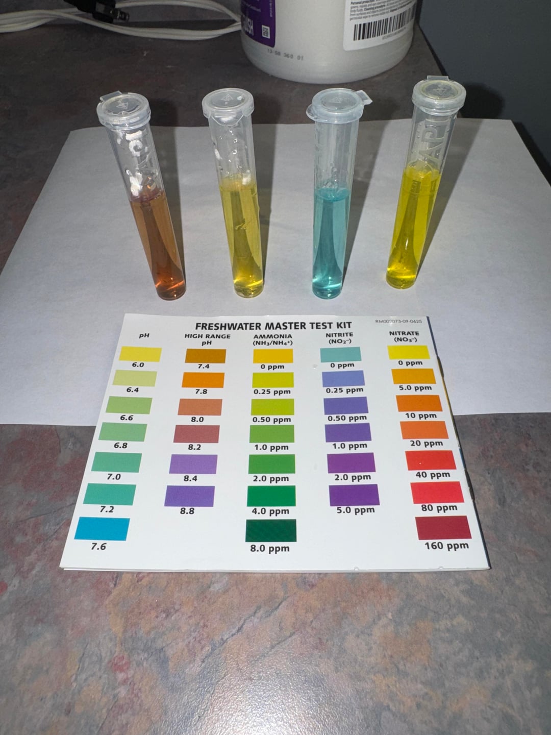 The nitrate test is finicky and prone to false negatives if the bottles and tube are not really thoroughly shaken up, even banging the bottles against a table. So it may not actually be 0 in a case like that.