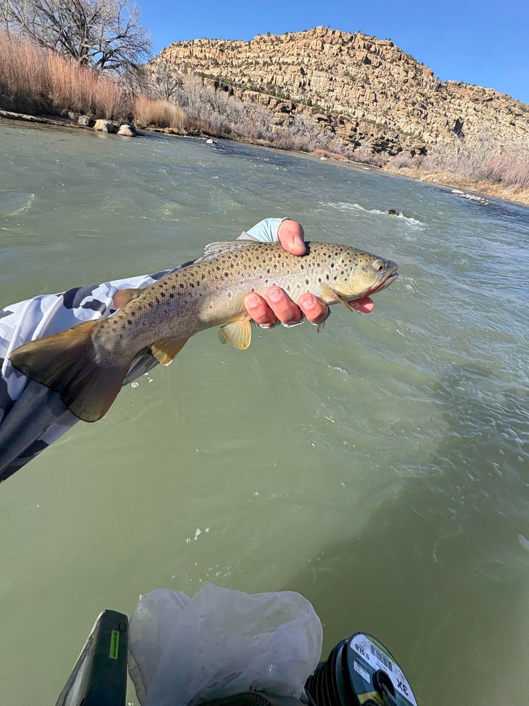 Great stretch of weather in NM. Had to hit the Juan. Water is turbid due to floods last fall. 8 weight sinking line with streamer/leech. Posted by Effective-Key8842