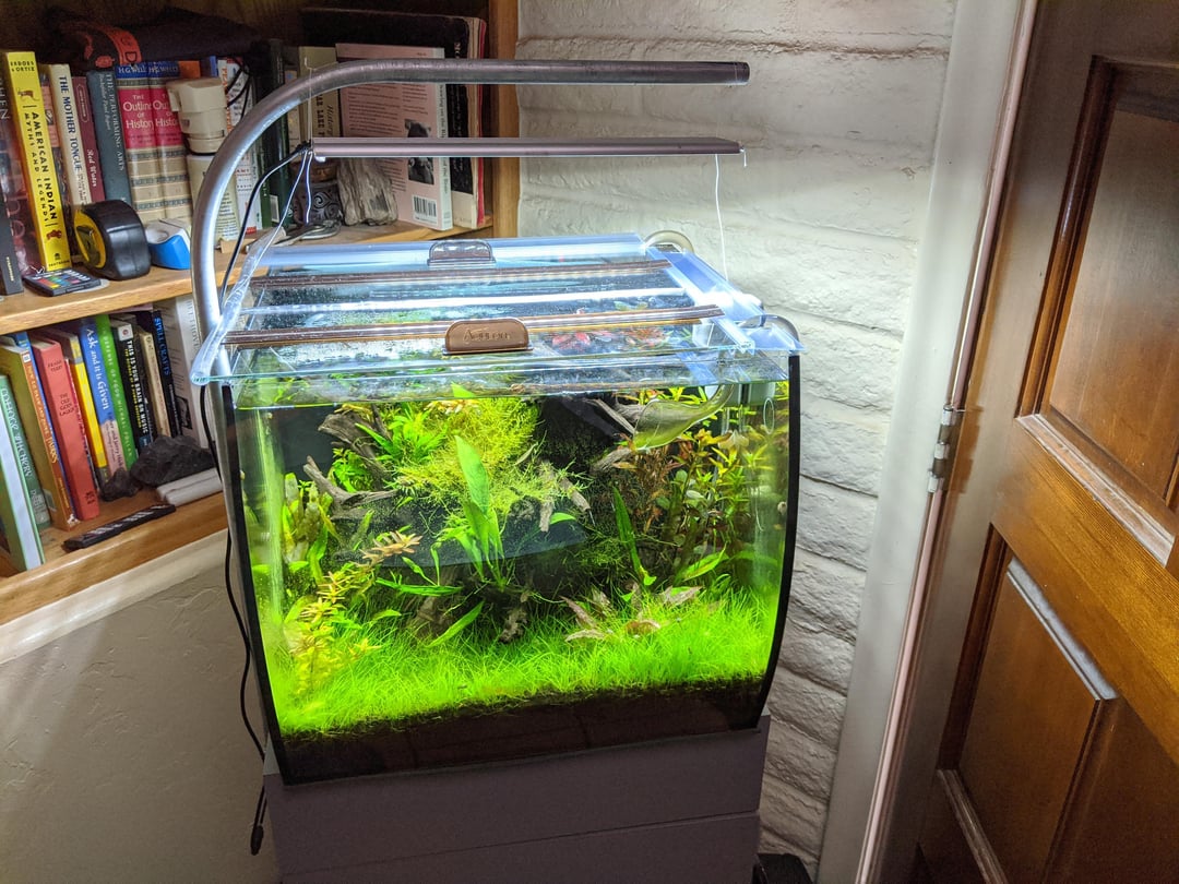 I got him from petco, my only amano I've ever had. I have hundreds and hundreds of cherry shrimp in other aquariums. But only the one amano. He was…left alone for the last two years at my parents home while I get settled in my new home, 4 hours away. I thought he was long dead, being in a fluval flex that only had water top ups for the last two years. But to my surprise when I got the tank to my home and fully drained everything…he was crawling around the substrate!