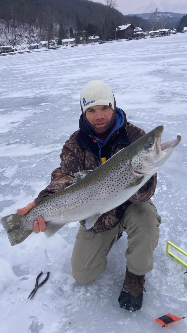 Jumped onto the ice for the last time today. Got skunked but nice way to spend a day. Caught a few big mammas this yr. Amazing how long it takes for these trout waters to become fishable, then how fast they become un-fishable
