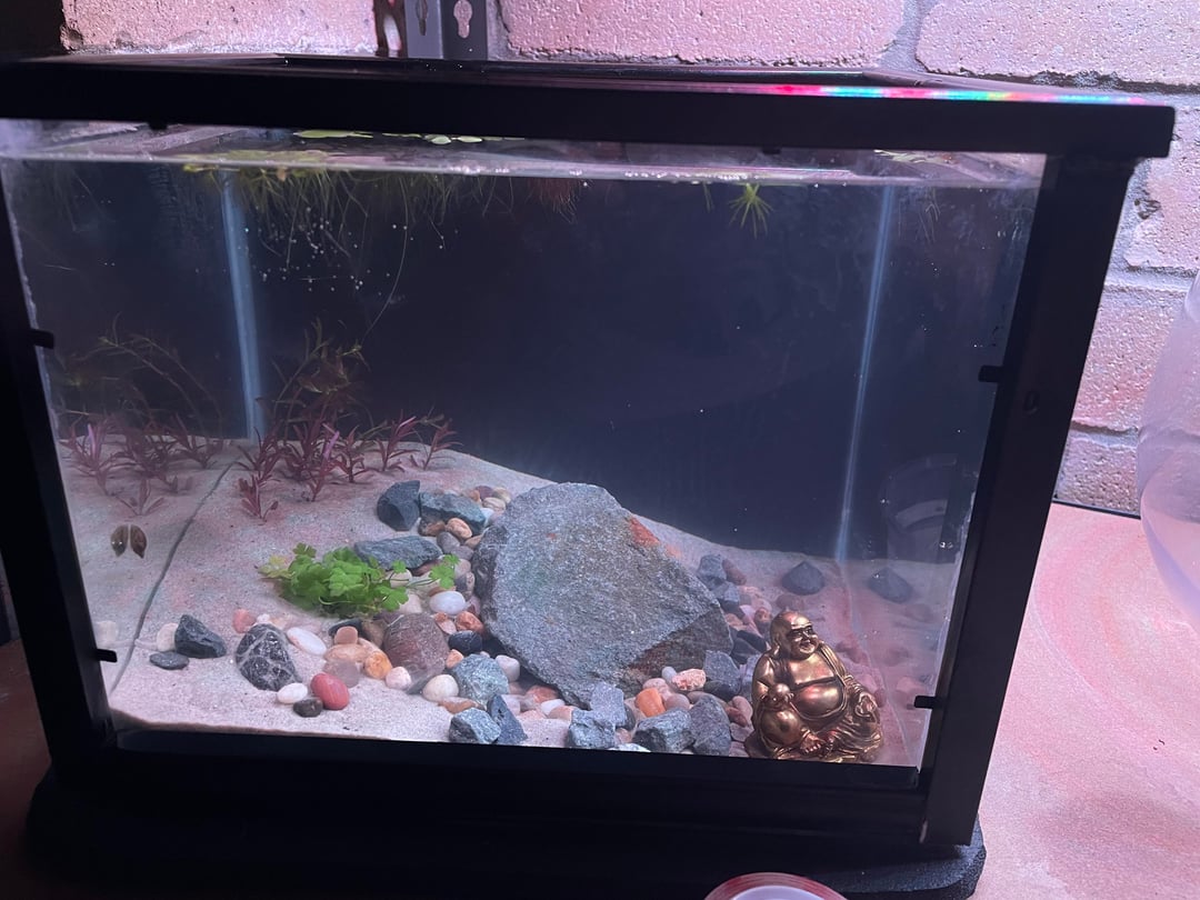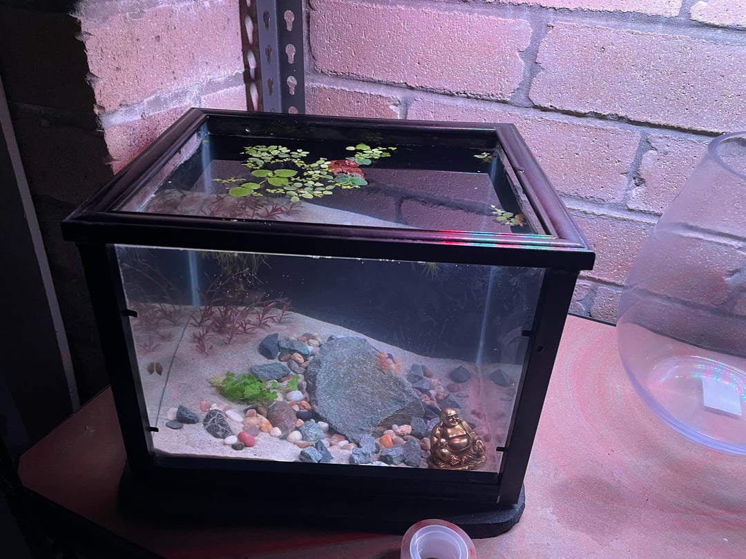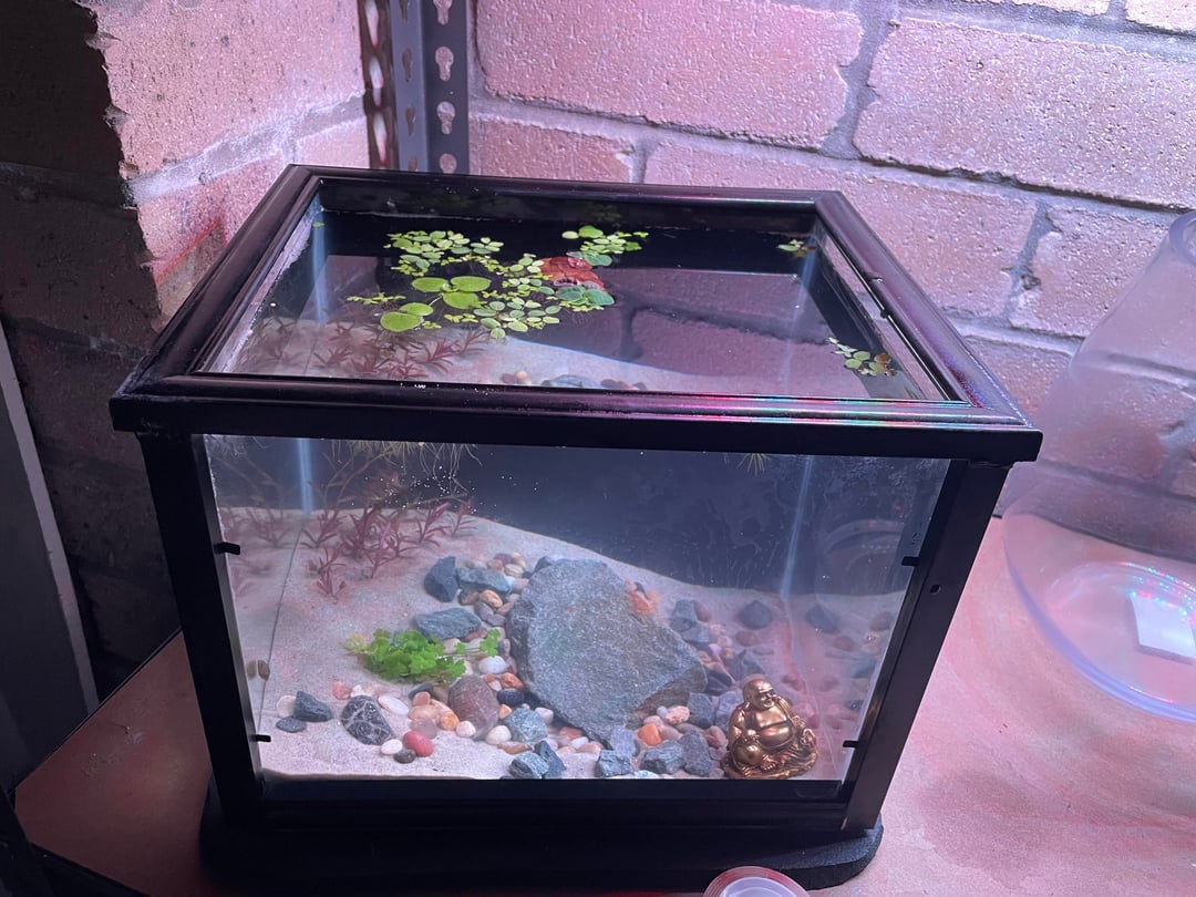 I made a no filter shrimp tank from 5 picture frames today and using every part I could including the literal frames 😂