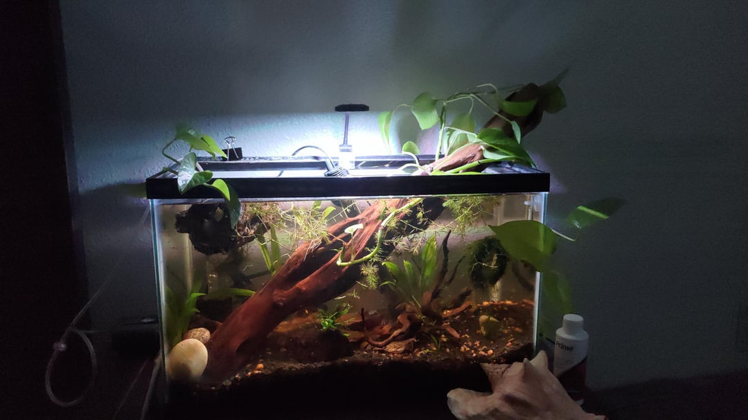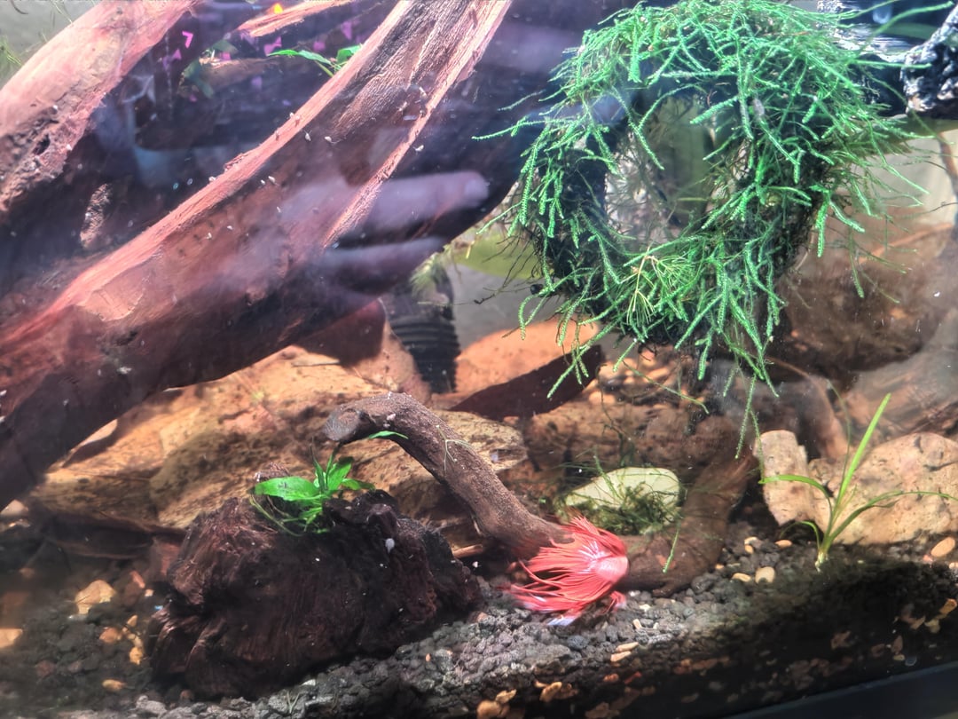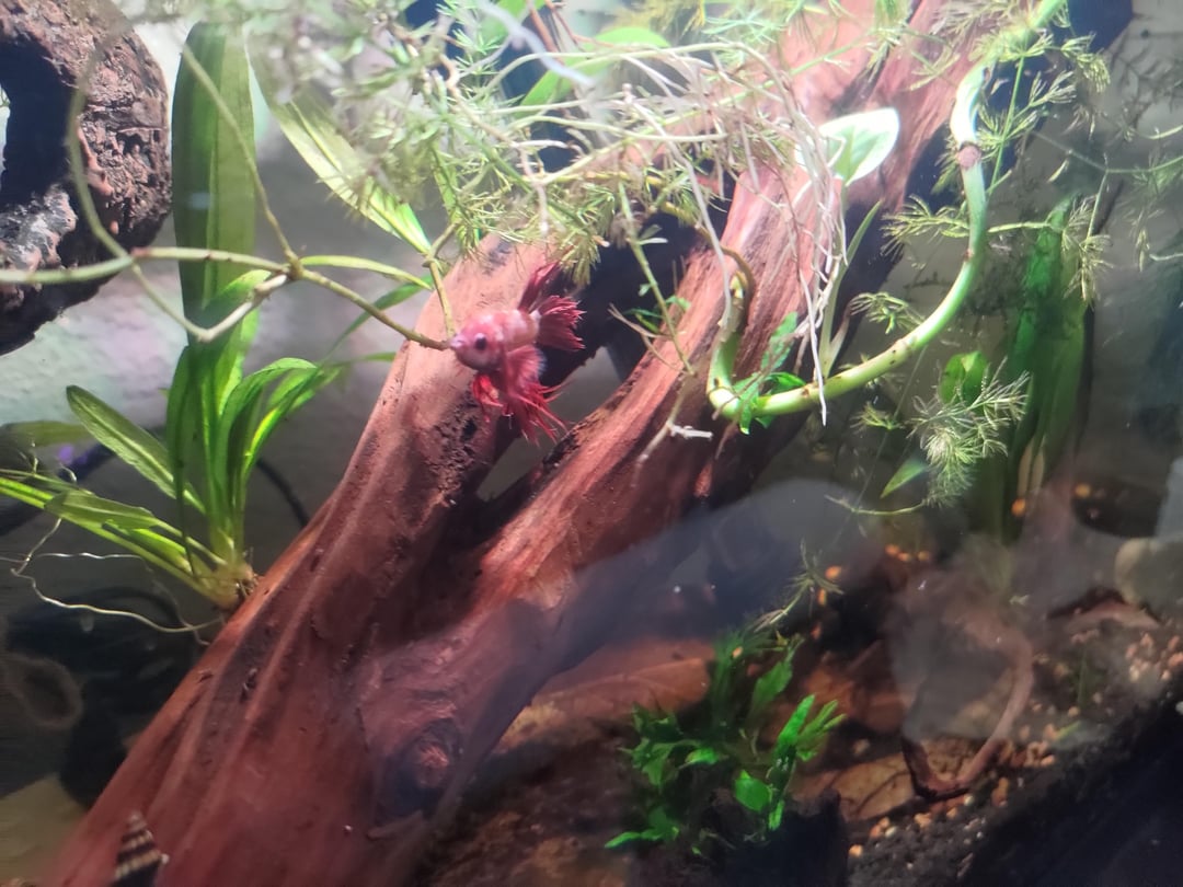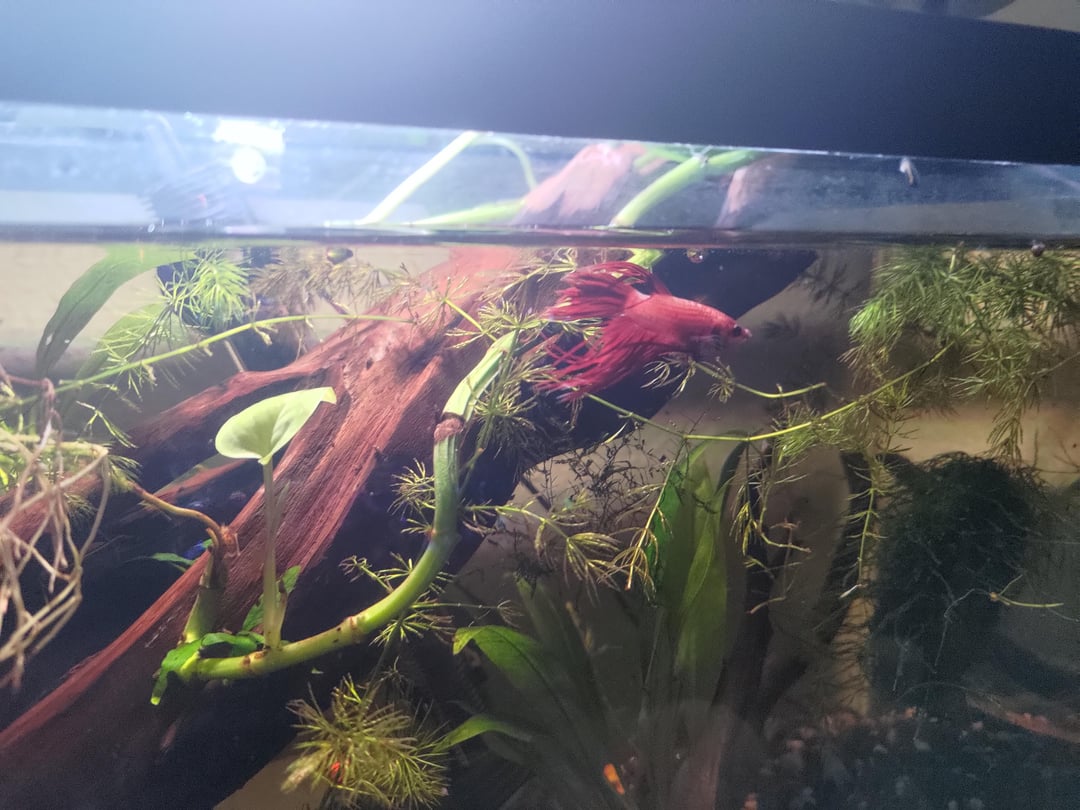 I got this tank/set up from FB marketplace including the Betta fish from someone who didn't have time for aquarium upkeep anymore. I added the large price of driftwood 3 or so weeks later. I also added the Java Moss Ring early on.