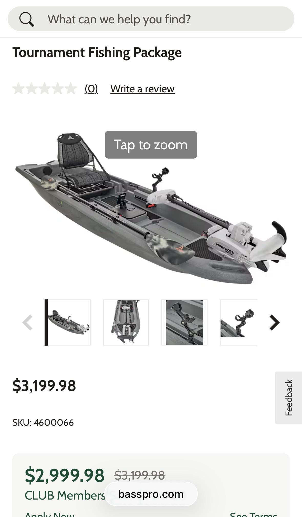 Thinking of buying this kayak package from bass pro shops, wonder if anyone in this group has it and what they have to say about it. Also looks like does not come with a battery, any recommendations on what battery to get?
