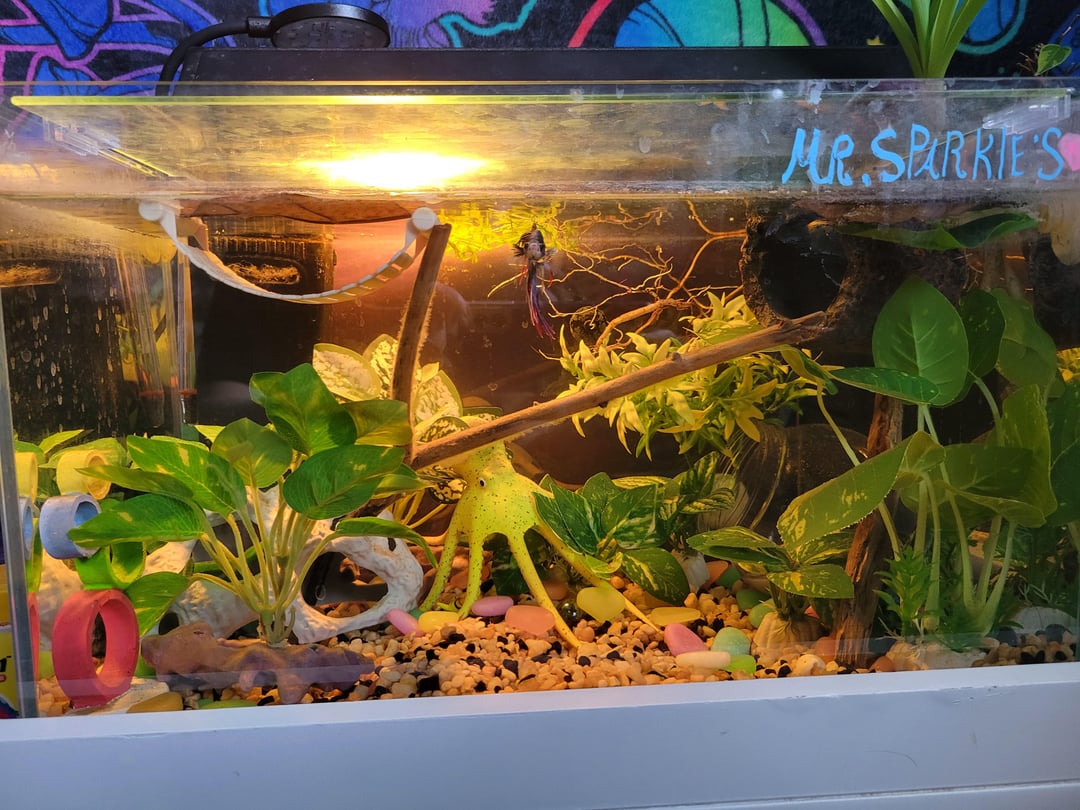 3. I love floating plants like forgbit my wee betta loves them as well. Helps defuse the light and keep it darker for him 🥰