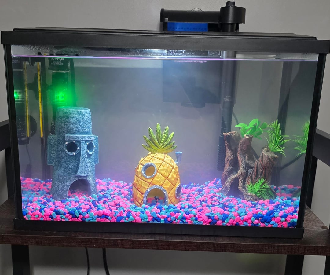 begginer fish keeper. Just wanted to thank the people in this community for steering me in the right direction. First picture is beginning of January. Second picture is the tank currently and 3rd is my Girl Zoey. Any feedback would be welcomed. Thanks guys.