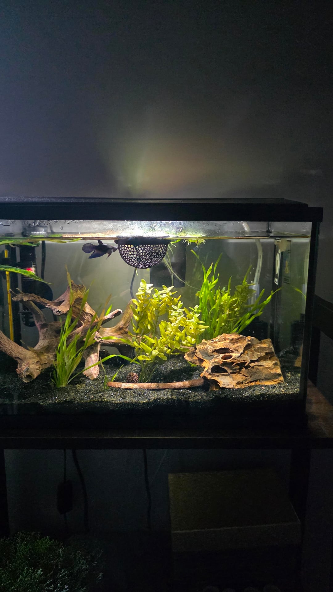 what a wonderful upgrade and a beautiful betta! your fishy friend will lead a very happy life thanks to you 🙂