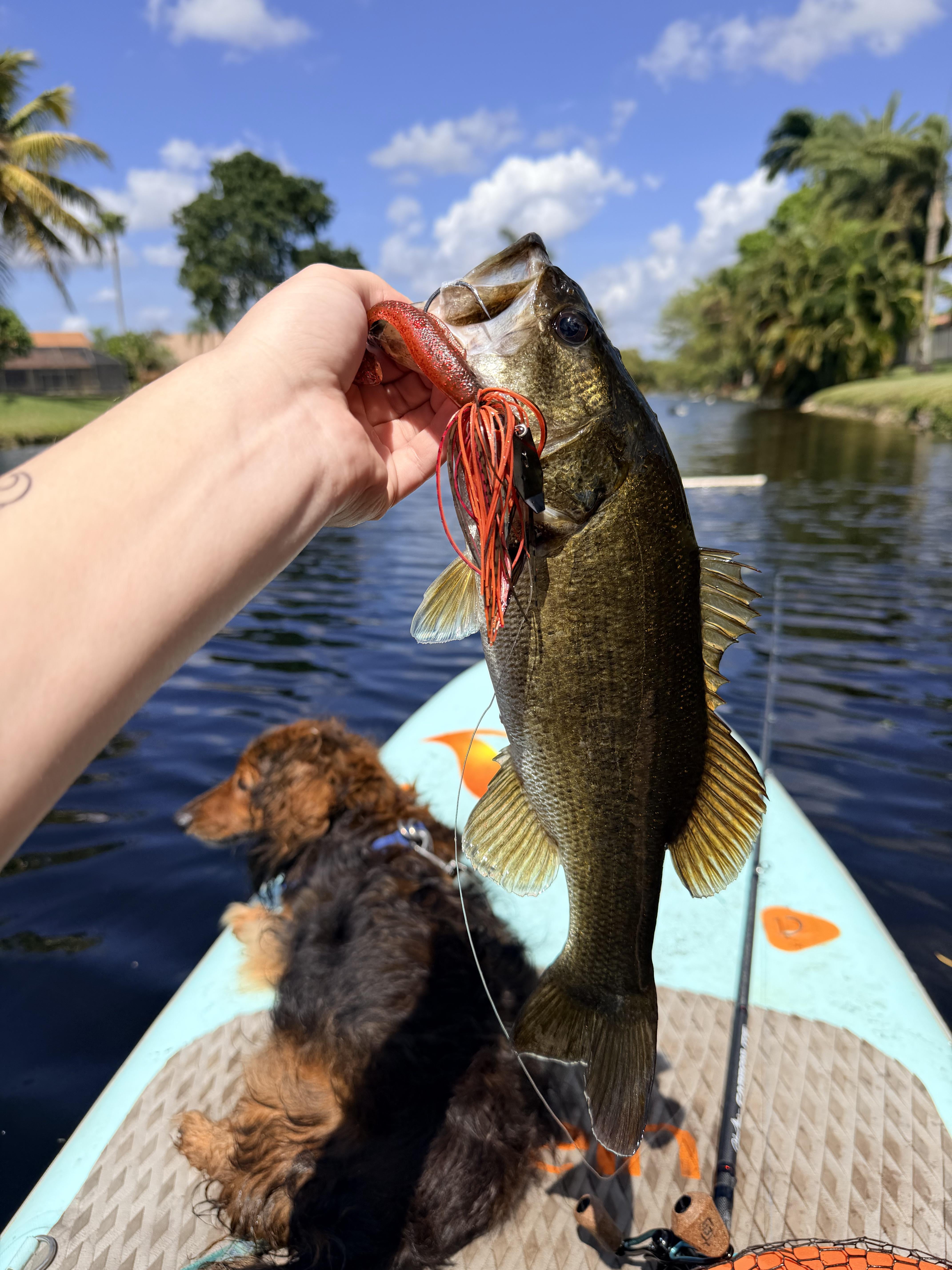 At first I’m thinking oh ya nice fish. Then I notice it’s fighting weird, maybe it’s foul hooked. Nope it was a massive soft shell turtle with one of my treble hooks in its mouth. I’ve un hooked these guys on land before but trying to do it on a paddle board with a dog was awful. The second I got the hook out he bolted so I didn’t get a photo.