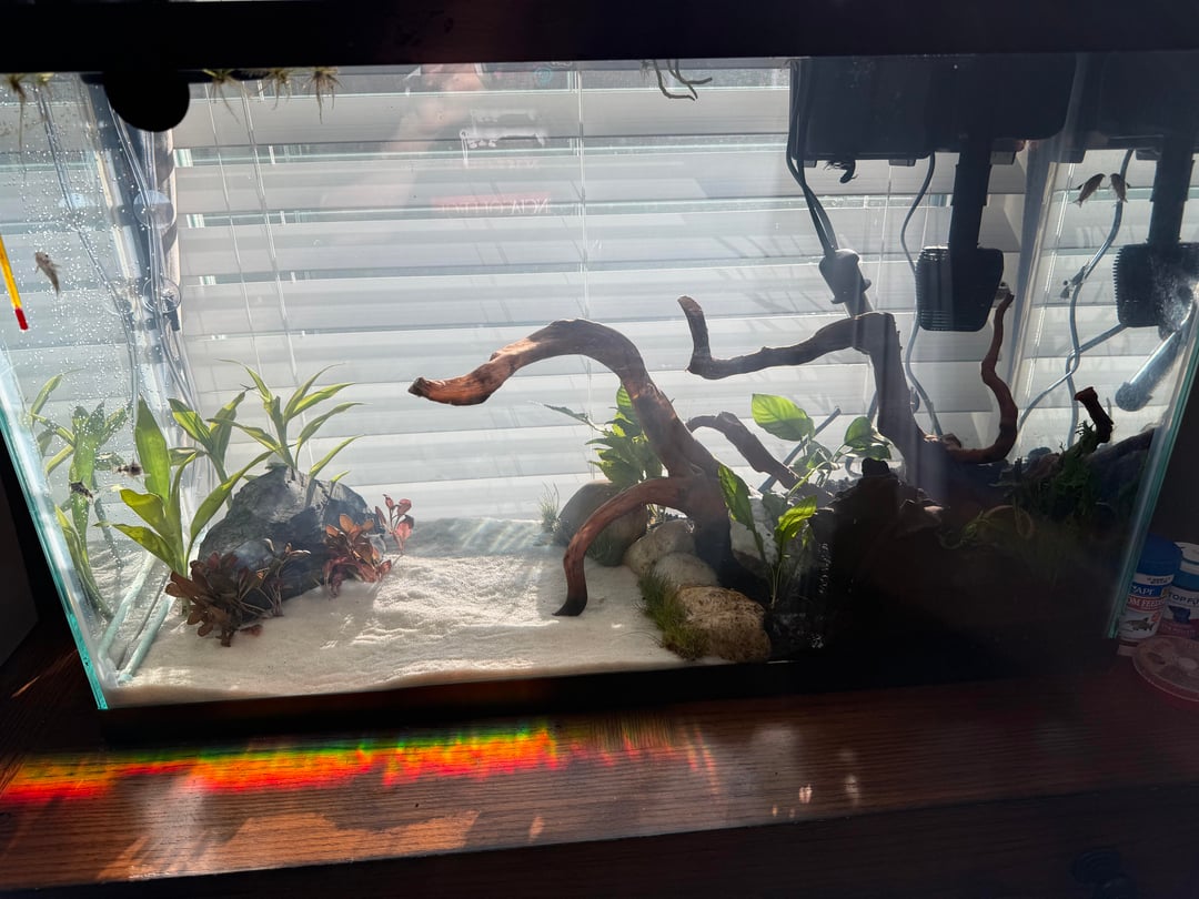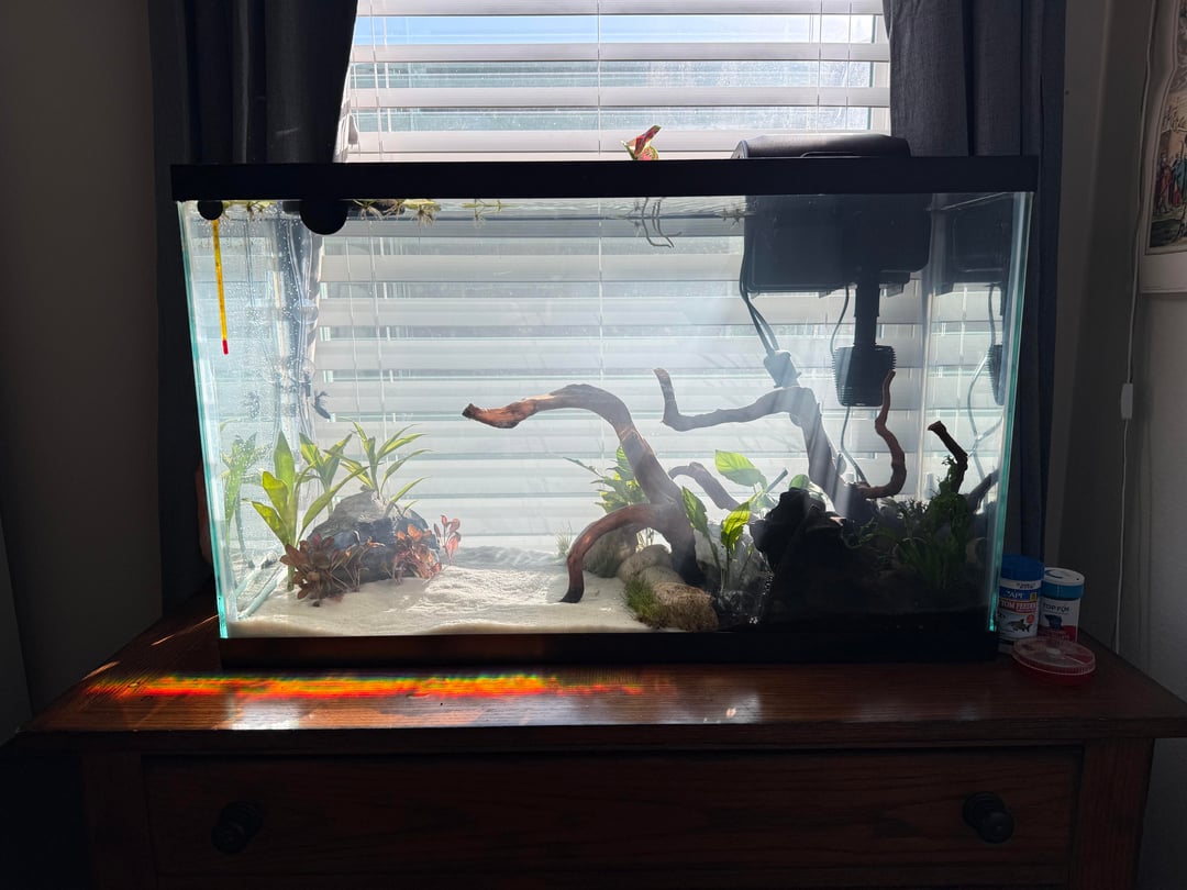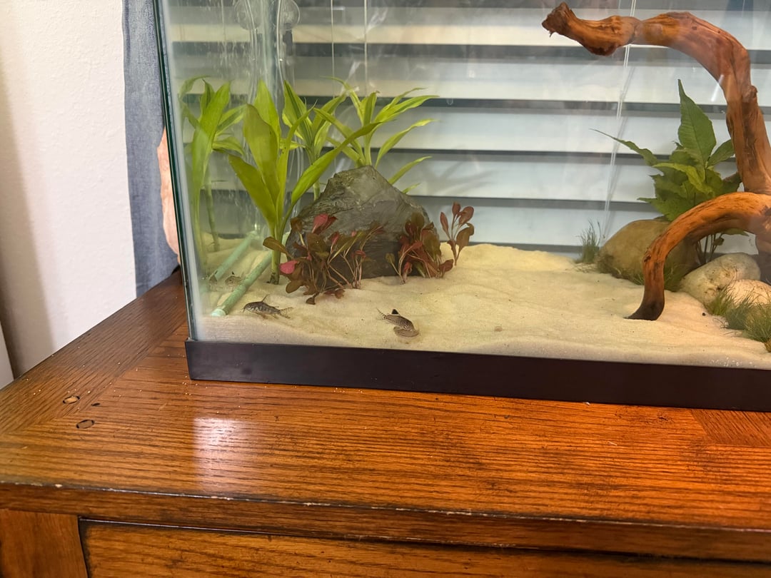 I just upgraded to a 35 gallon for my beta and corydora. I have 6 corydora and some shrimp too. I'm hoping that corridor like the sandy area. and I'm hoping that eventually the plants will get a little bigger because it feels a little empty right now
