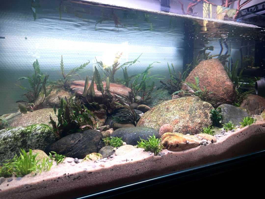 Only that you got to build my dream tank before me, its quite lovely. I would however like to suggest adding a few leaves in the low flow zones to get some of the benefits botanicals. I would also like to suggest maybe stocking with Panda Gara or Gara Rufa if it would suite your fancy.