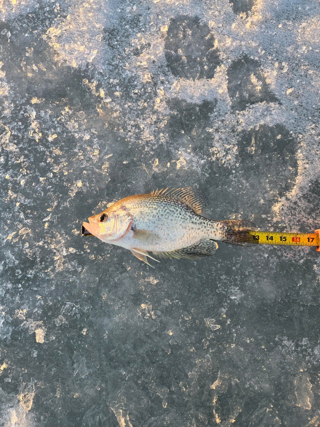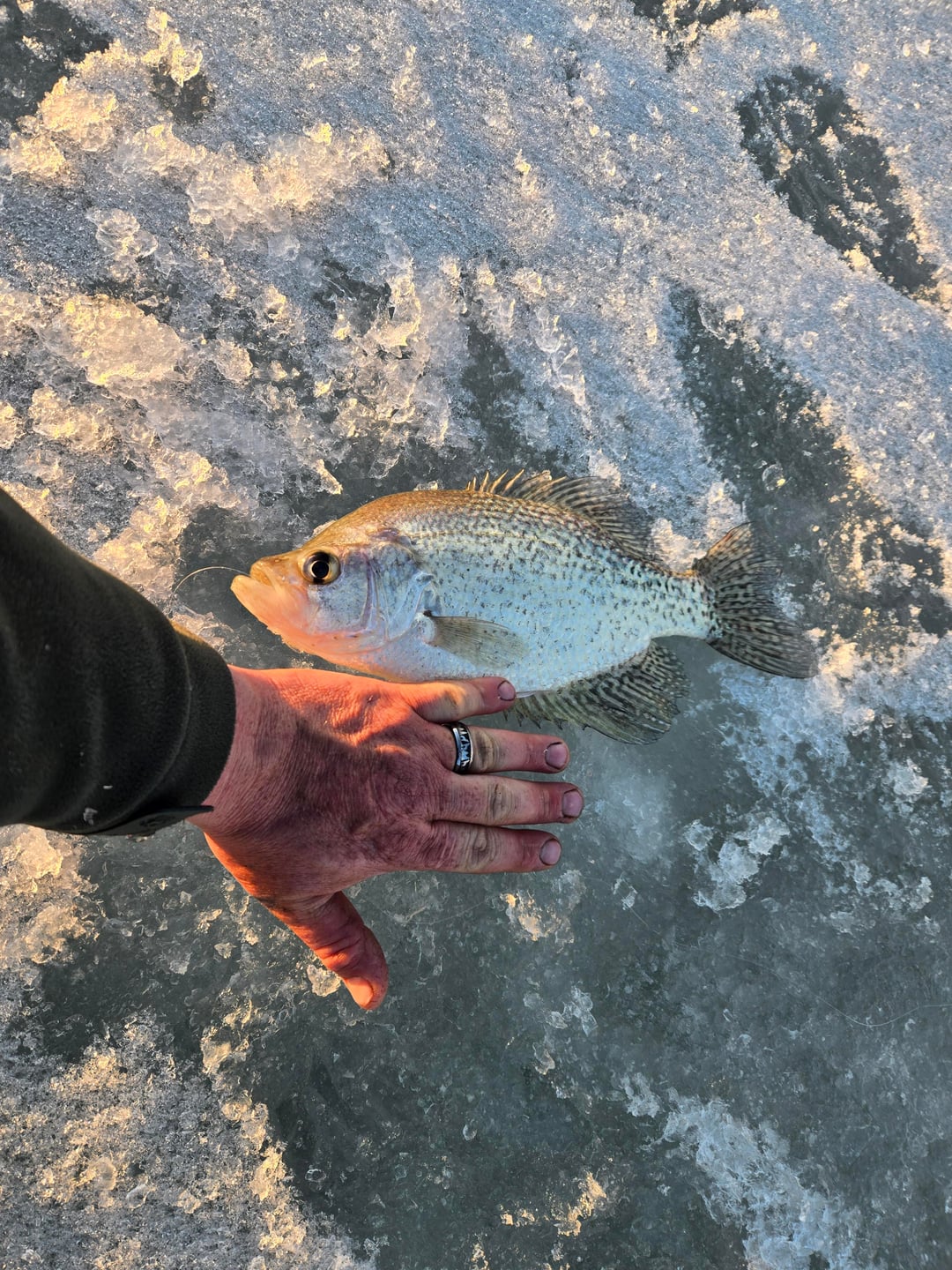 Some of the biggest crappies i have ever caught. Though I drilled like 20 holes for these guys, the only lake I know of around me with a population of them. Very hard lake to figure out because there's no weed beds and no steep drop offs (deepest parts only 9ft) but some how it makes some damed big crappie.