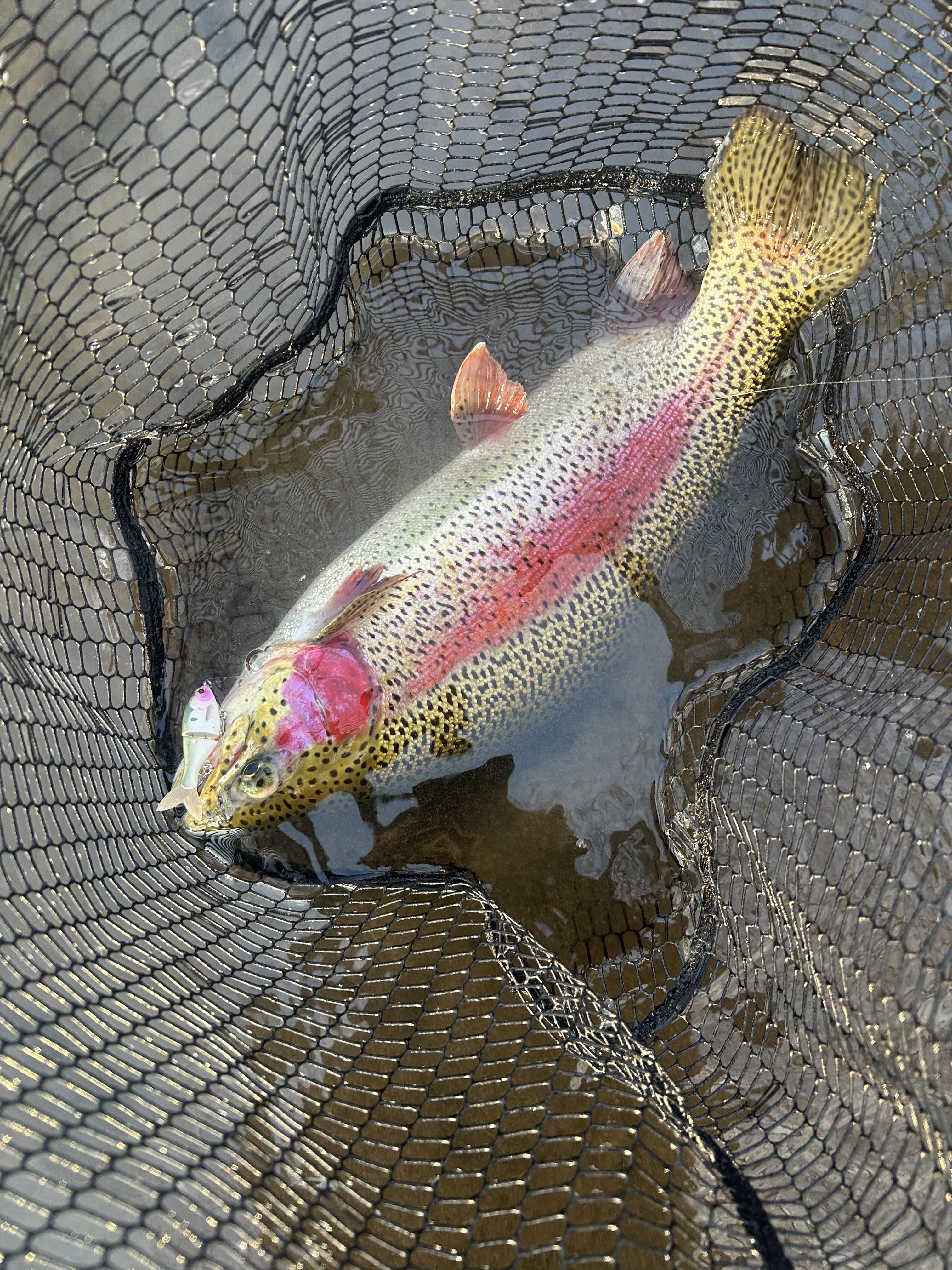I was fishing for some wild browns today. This big holdover rainbow bit.