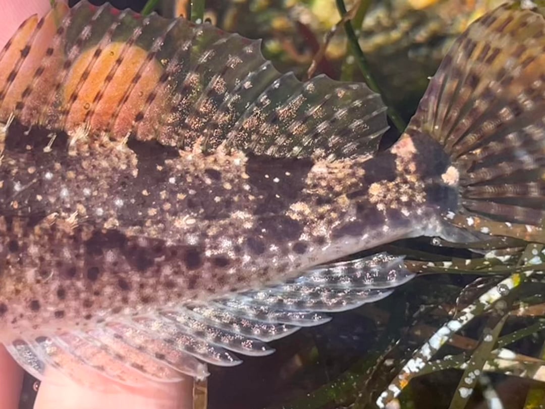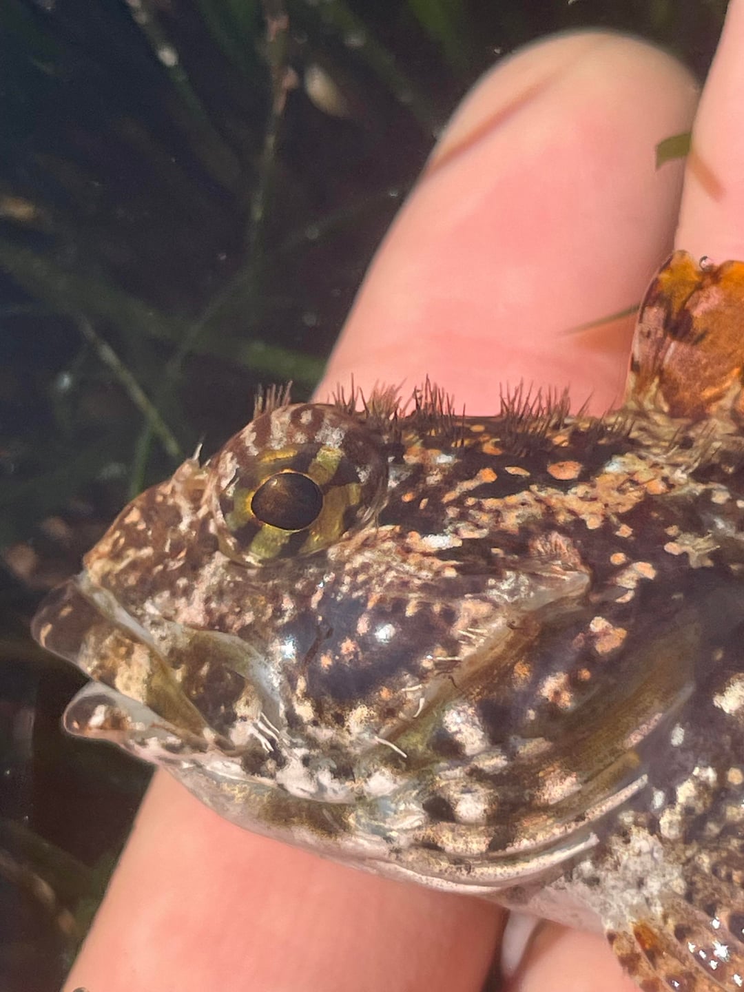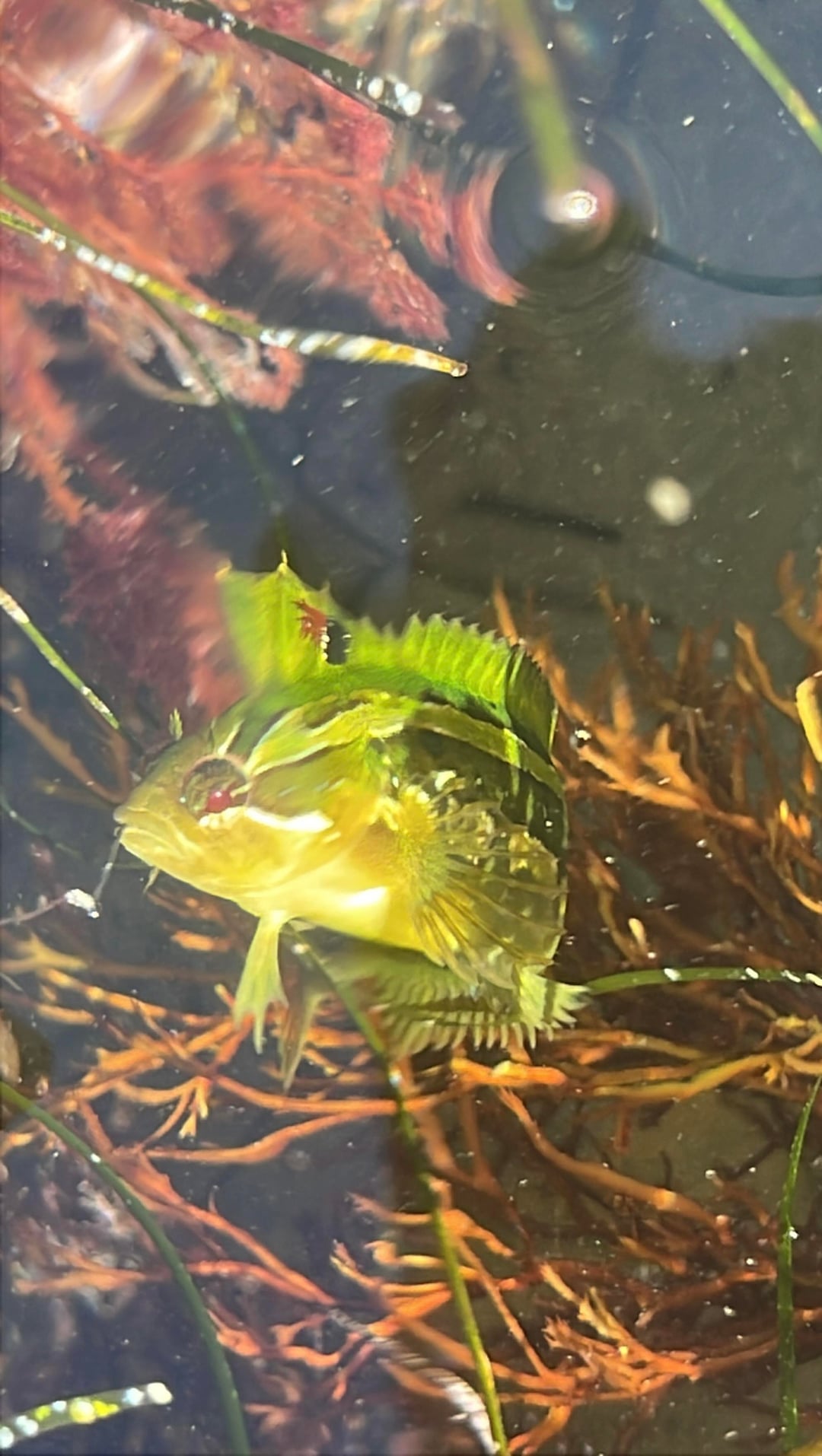 Slides 1 and 2: Crevice kelpfish (Gibbonsia montereyensis) Slides 3 through 6: Woolly sculpin (Clinocottus analis) Slide 7: Garibaldi (Hypsypops rubicundus) Slides 8: Notchbrow blenny (Hypsoblennius gilberti) Posted by foamerkid