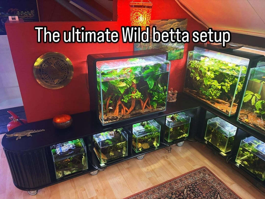My friend sent me these photos a few months back but never had the chance to write a full post and since I’m on Reddit today and have some time I’d thought I’d post for you guys as an idea to what to go for when setting up a tank for your wild bettas, wild hybrids or bettas in general.