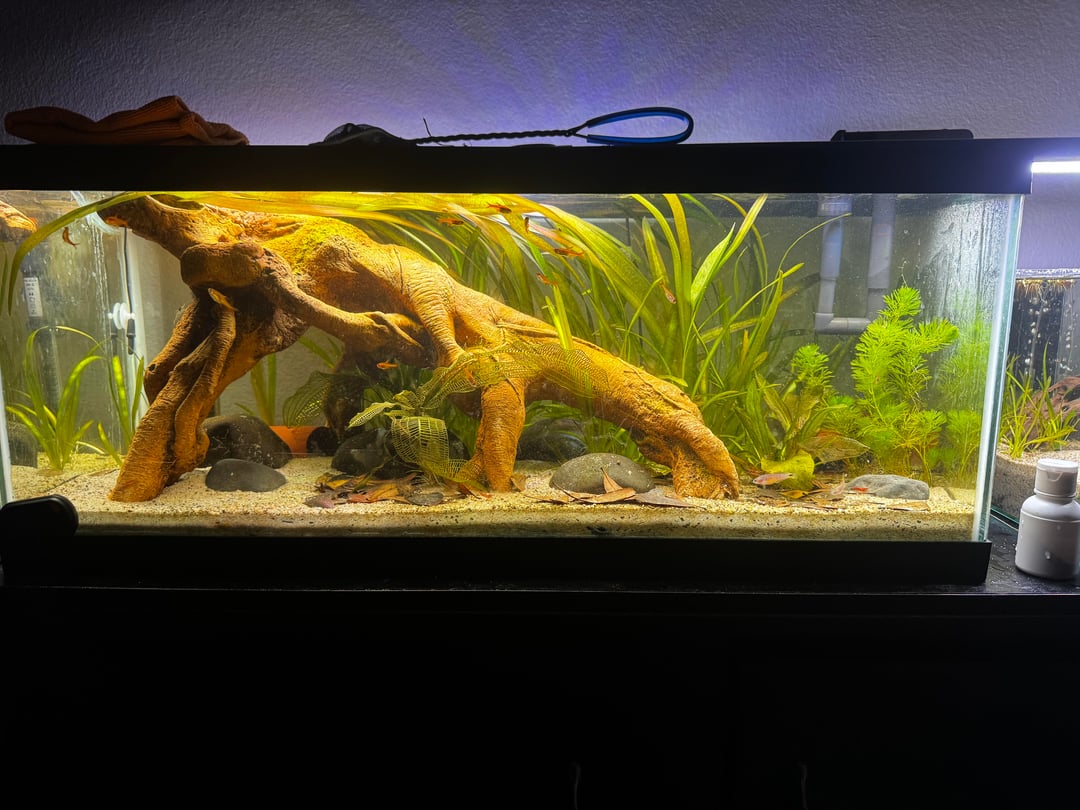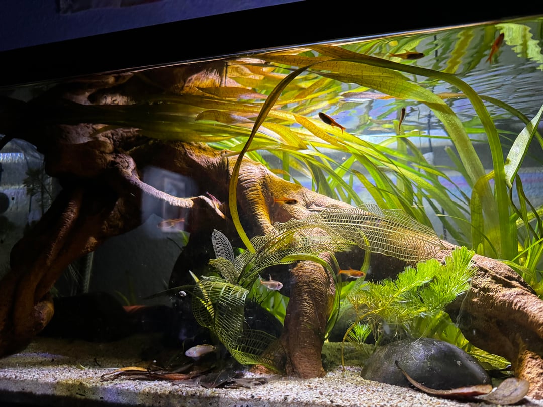 stocking: 3 peacock gudgeons and 13 ember tetras
