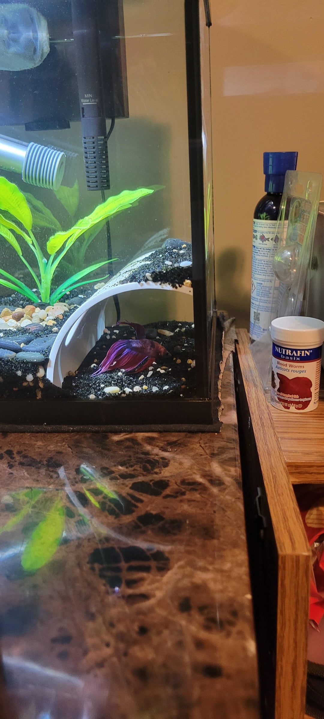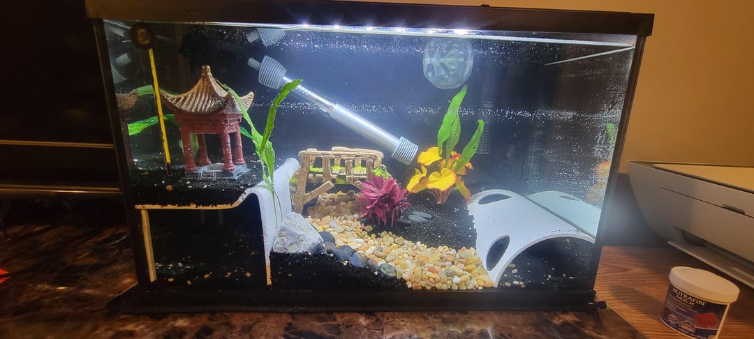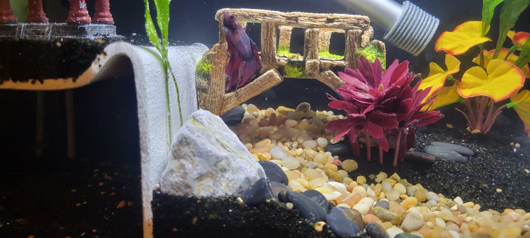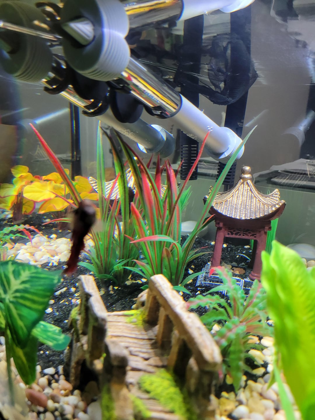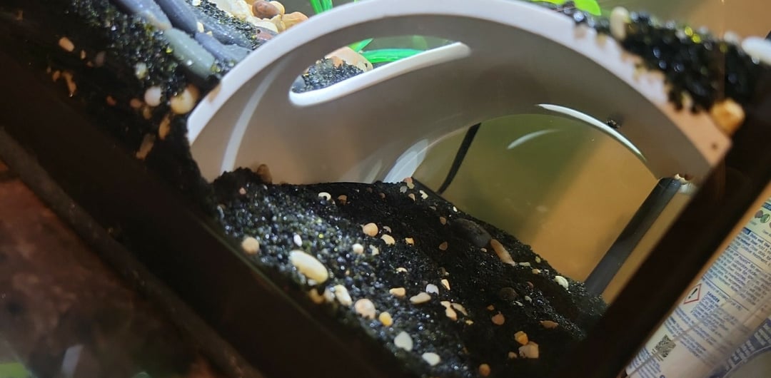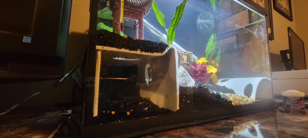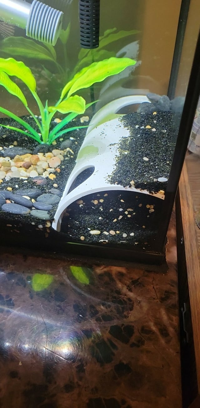 This is probably how I will keep it until im ready to step up to a 20 gal long, at which point ill have researched a way to coat the cave in a layer of substrate, or ill go full space pod vibes.