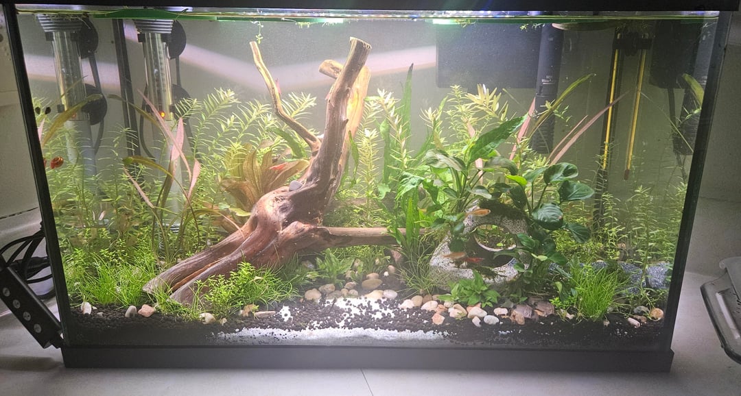 Super happy with how it's turning out! I definitely need to fix the lighting situation, as the rotala are sort of bending towards the center… maybe a new light in a couple paychecks lol